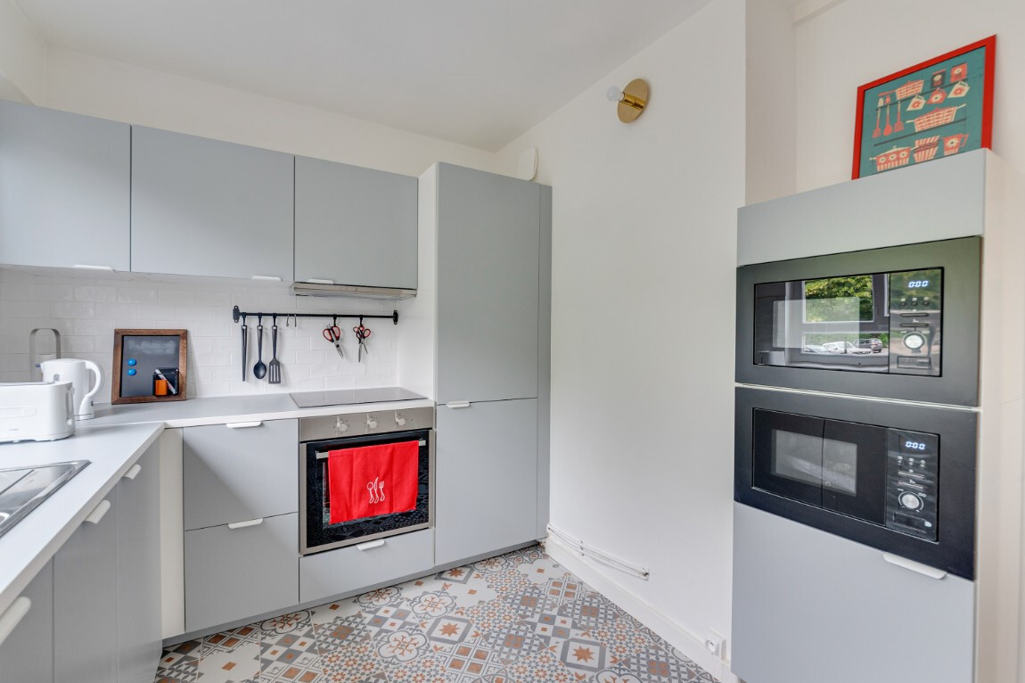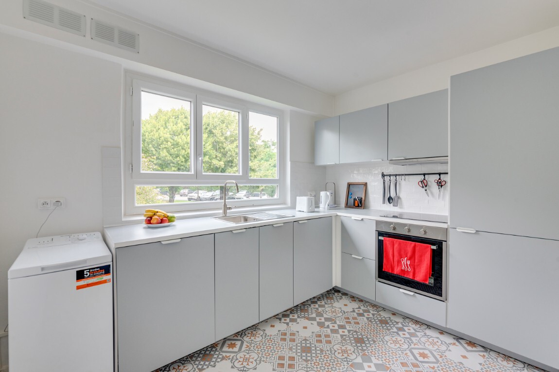 - dans les espaces communs, la cuisine dispose d'un grand frigo, d'un four, d'un lave-vaisselle, d'une machine à laver de deux fours micro-ondes, et de toute la vaisselle nécessaire.