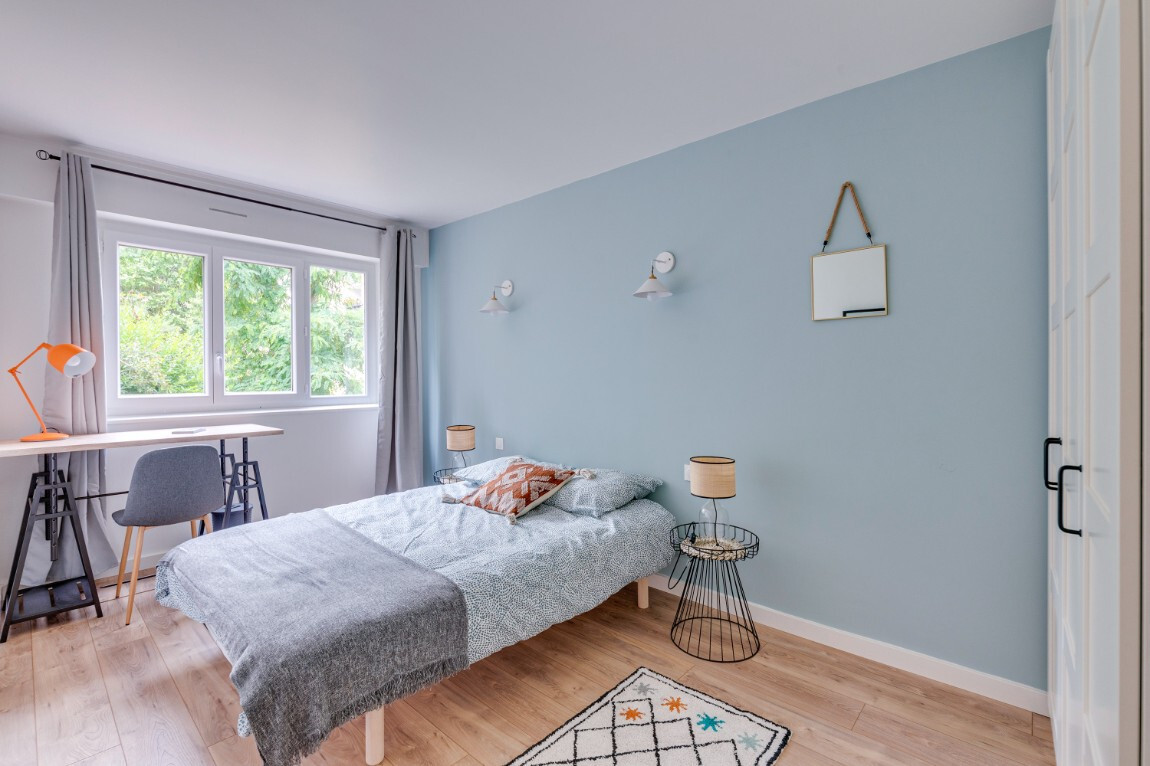 - elle est entièrement équipée et vous n'avez plus qu'à poser vos valises. chaque chambre est indépendante avec un grand bureau, un lit double (avec literie de qualité), de multiples rangements, un grand miroir et des éléments de déco.