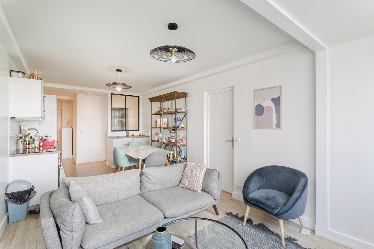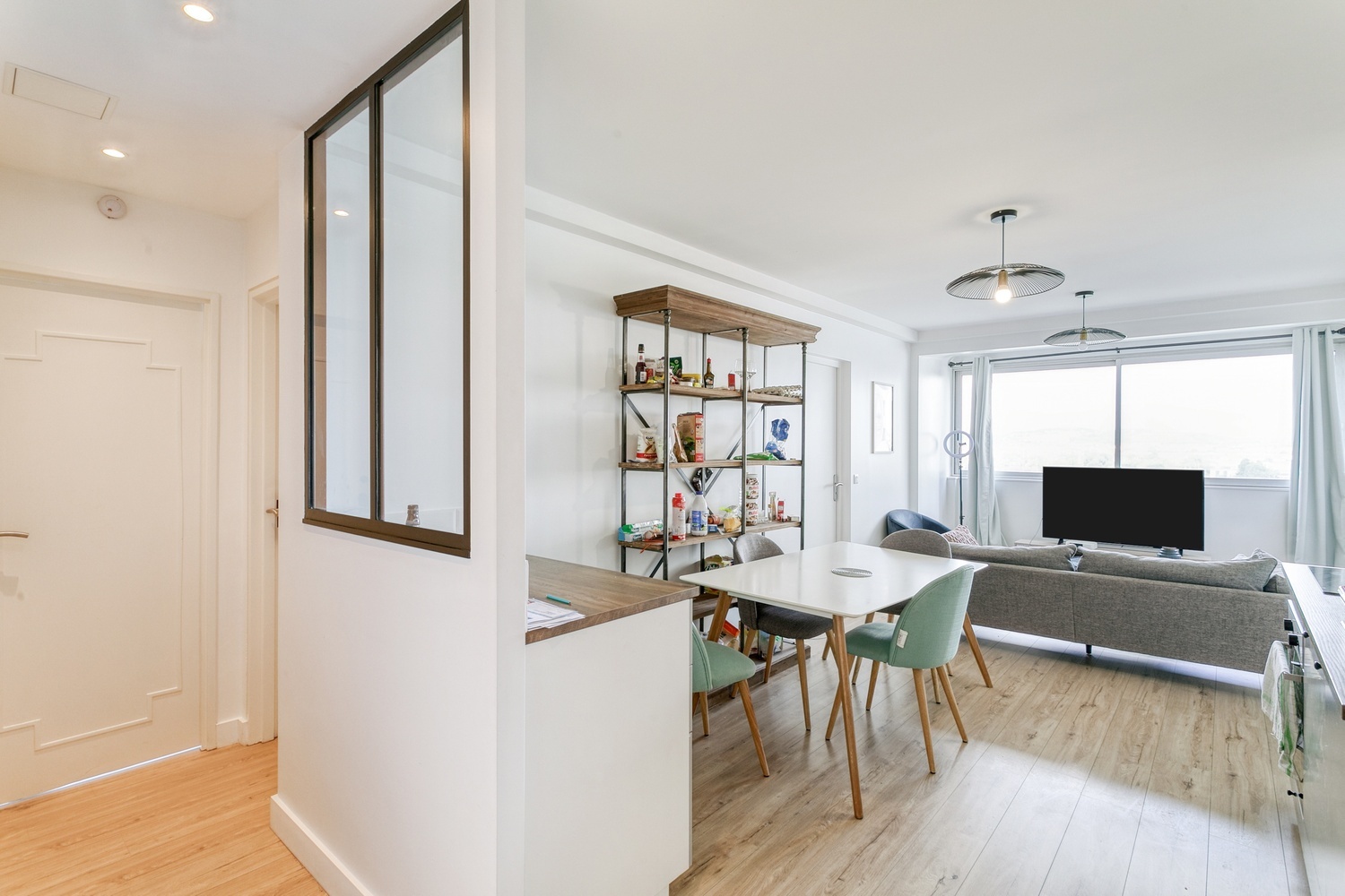 - Un séjour lumineux avec une cuisine ouverte, aménagée et équipée,