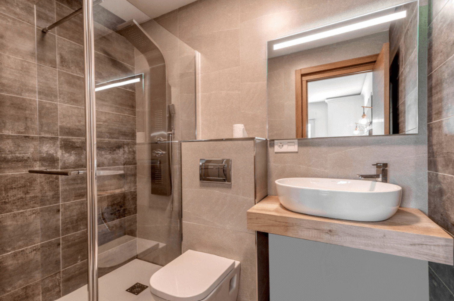 L'appartement dispose de trois chambres spacieuses, toutes baignées de lumière naturelle et chacune avec sa salle de bains privative, garantissant confort et intimité.