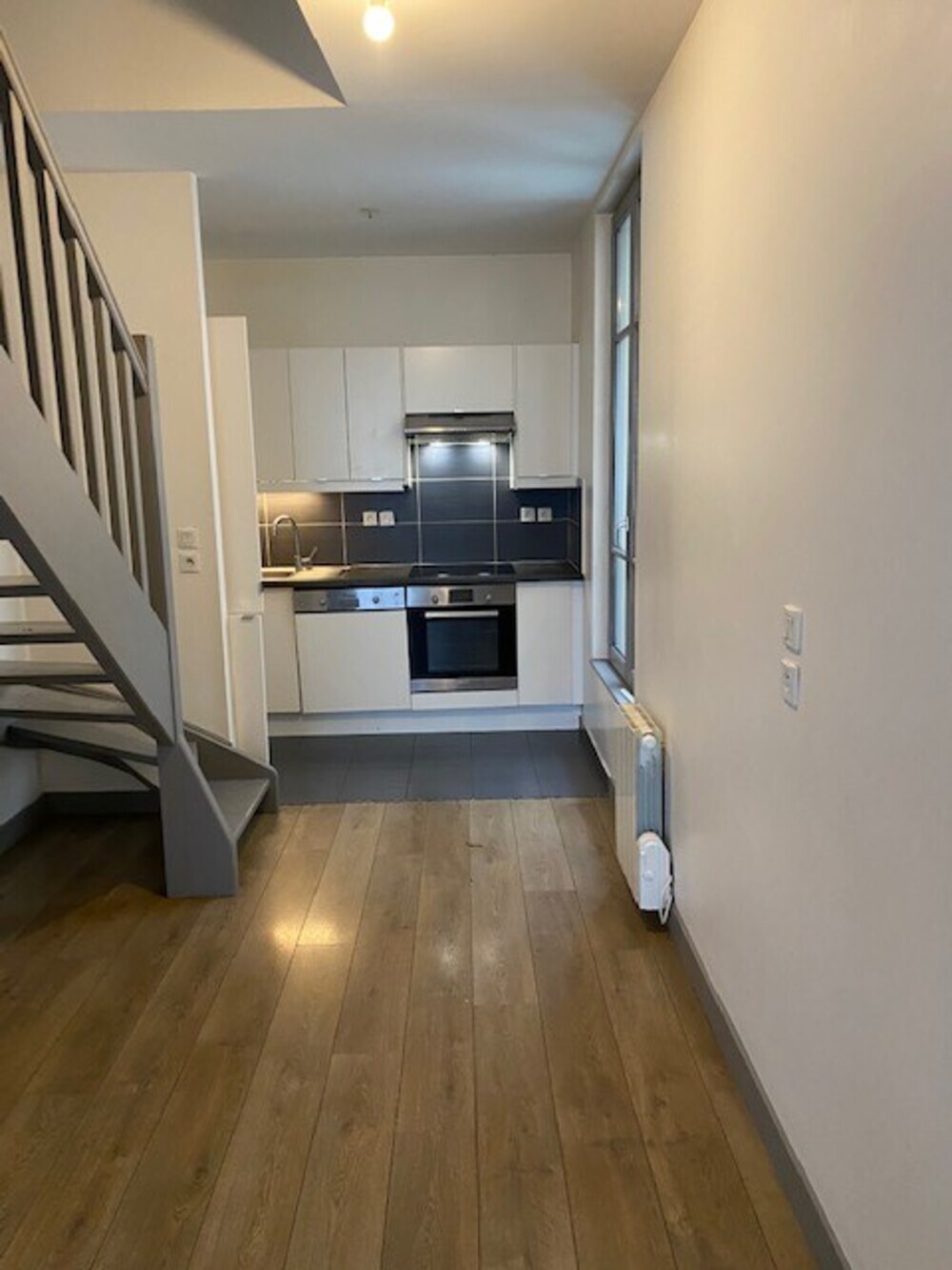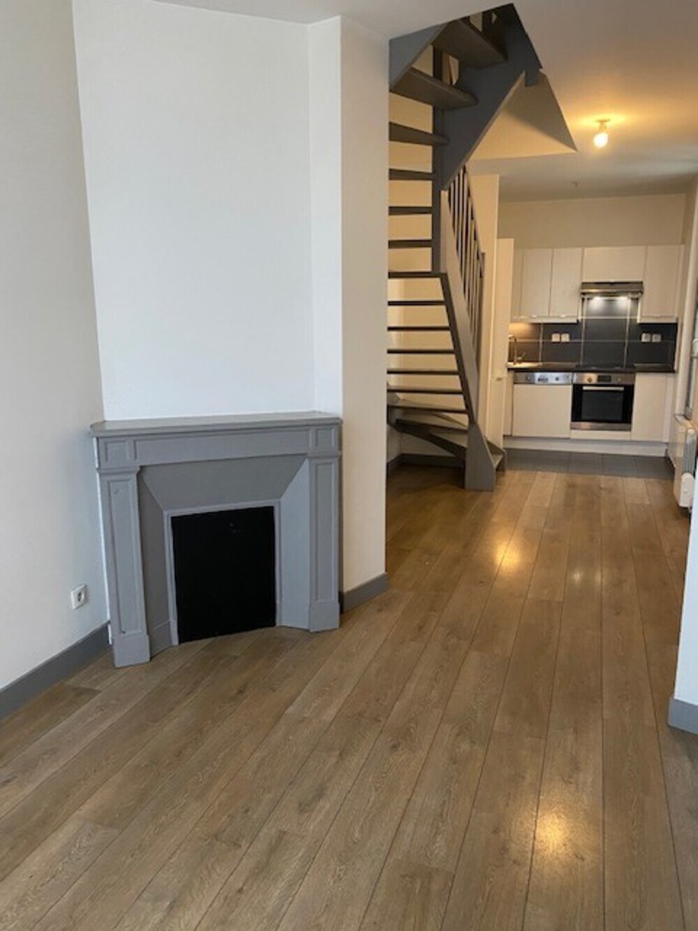 Dans un immeuble ancien, un appartement en duplex de type 2 pièces (D1) d'une surface de 40,07 m² comprenant un séjour, une cuisine aménagée et équipée (plaques de cuisson, four, hotte, lave vaisselle et réfrigérateur).