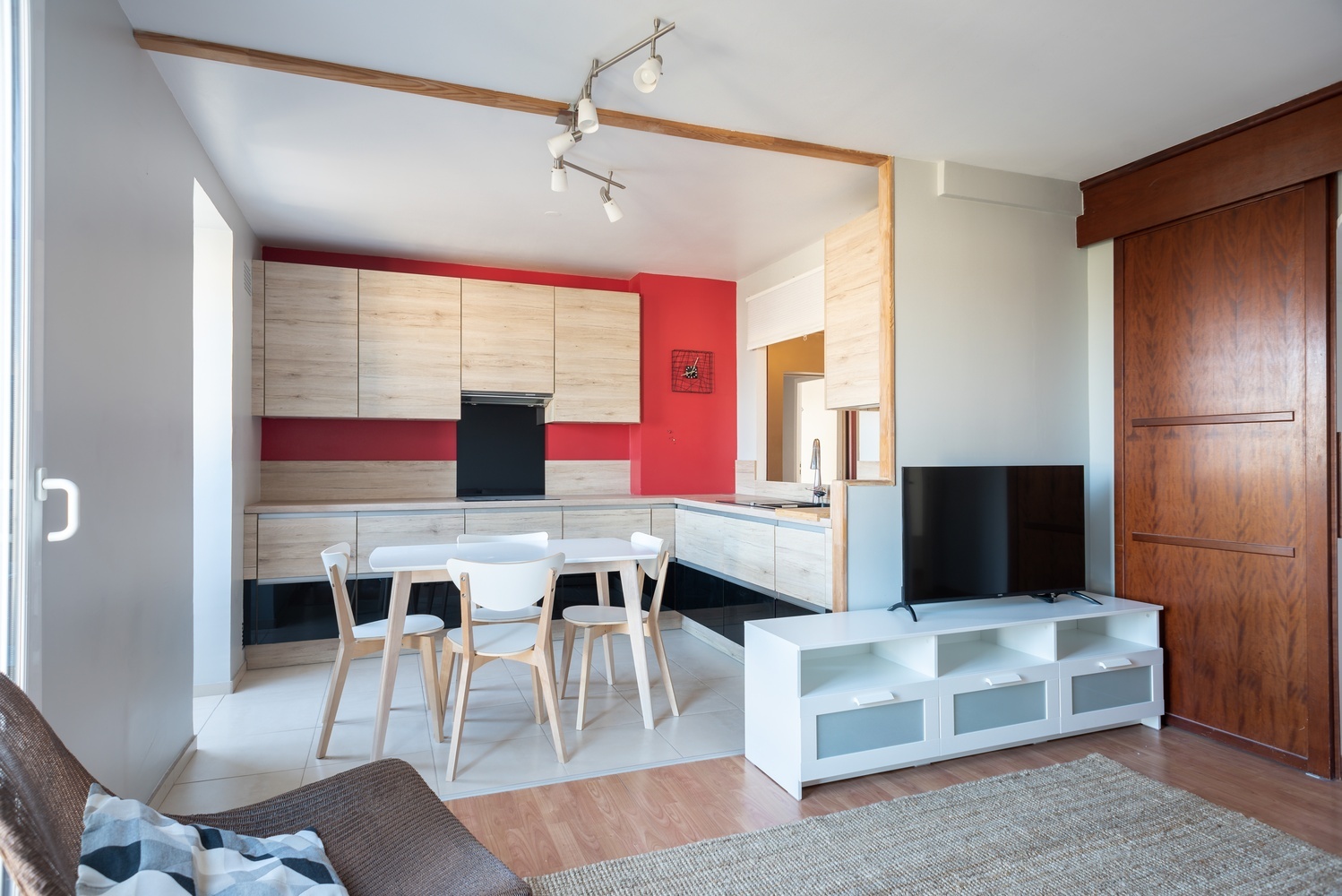 Vous retrouverez un séjour très lumineux meublé (canapé, table à manger, TV…), une cuisine équipée ouverte sur le séjour (vaisselles, four, lave-vaisselle, lave-linge, sèche-linge…) et 3 chambres spacieuses (lit double, bureau, armoire…) avec 1 salle de bain commune et WC séparé.