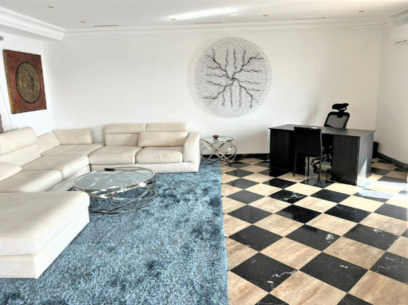 Le bien bénéficie de la climatisation réversible (chaud/froid), de sols en marbre, de double vitrage, d’armoires encastrées, d’un ascenseur et d’une cuisine entièrement équipée. La résidence sécurisée avec portail d’accès assure tranquillité et sécurité à ses occupants.