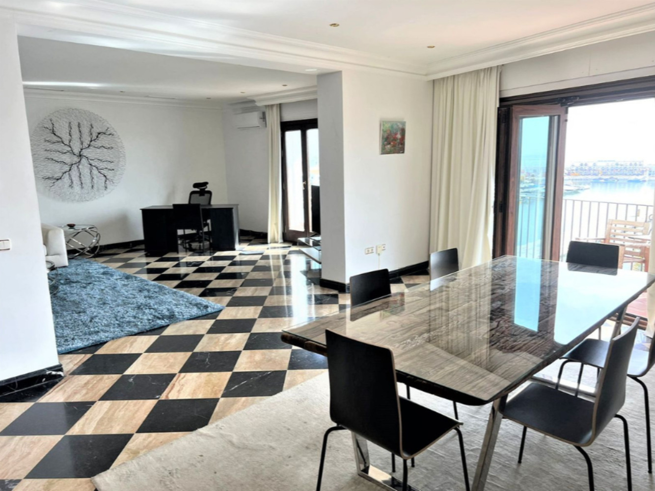 Ce superbe appartement en première ligne de la marina allie espace, luxe et emplacement privilégié. Offrant des vues spectaculaires sur le port, le salon et la salle à manger s’ouvrent sur une grande terrasse d’angle, idéale pour profiter pleinement du panorama et de l’ambiance unique de Puerto Banús.