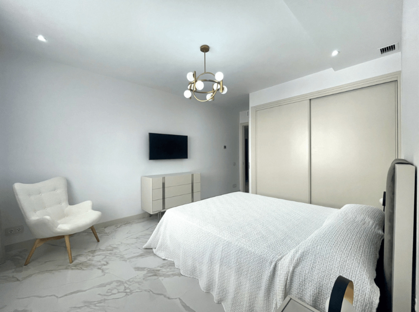 L’appartement dispose de 3 chambres et 3 salles de bains entièrement équipées. Totalement réformé, il offre un salon spacieux et lumineux ouvrant sur une grande terrasse avec vue sur les jardins, la piscine et la mer. Le salon et la suite parentale bénéficient d’un accès direct à la terrasse.