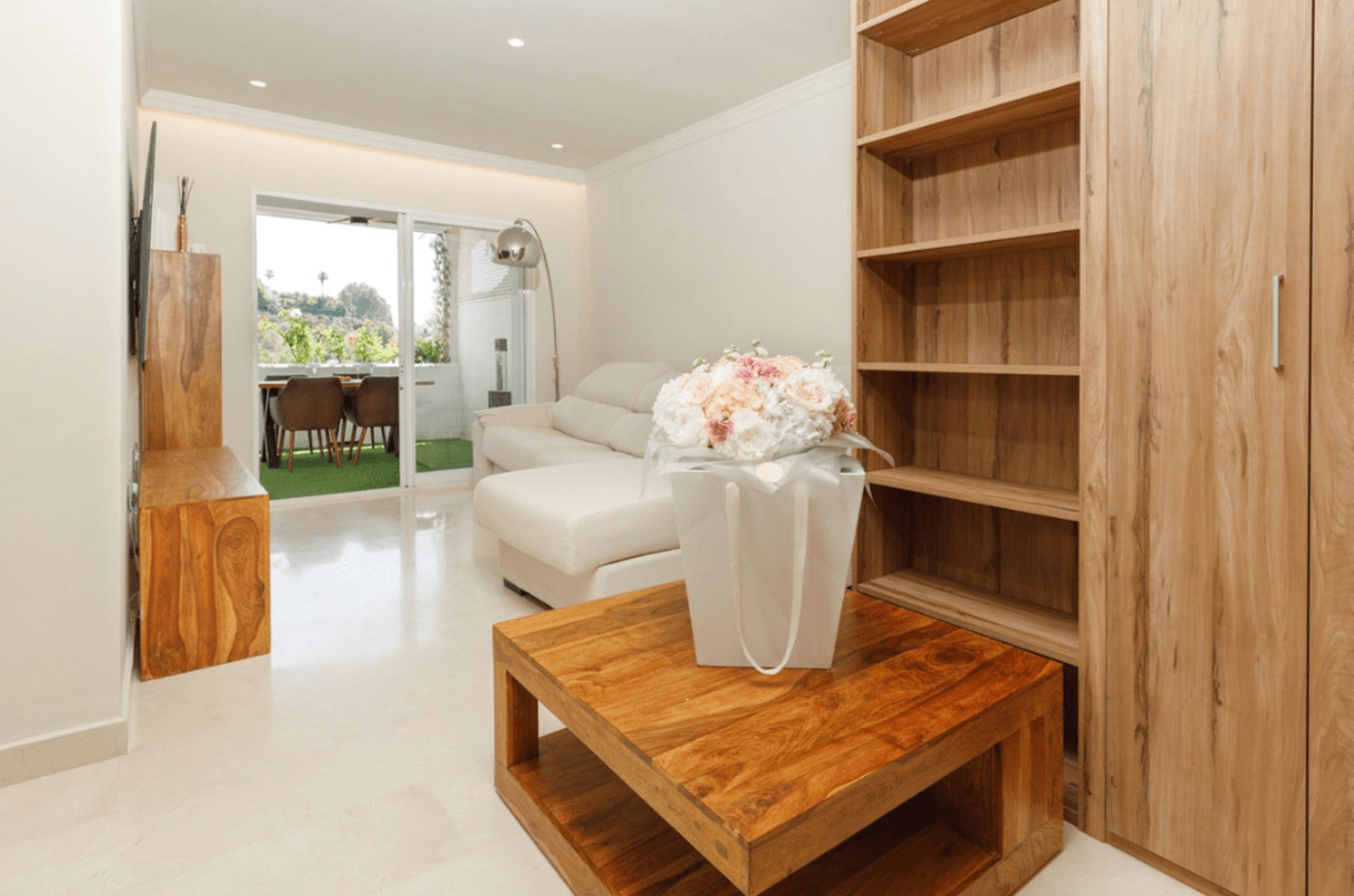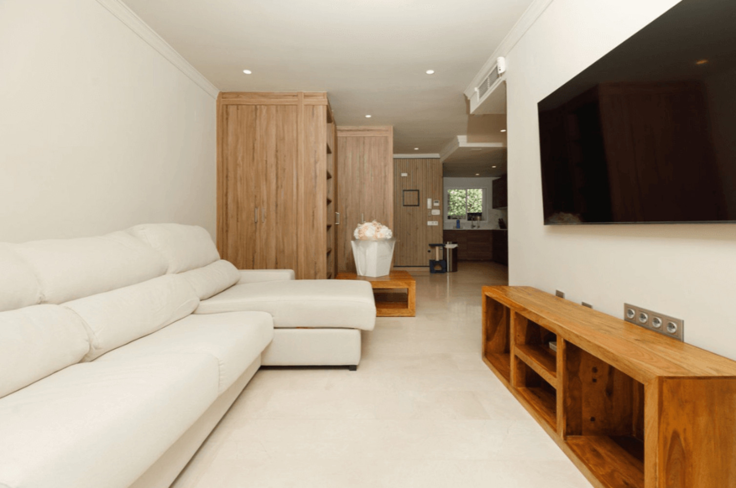 L’appartement est vendu entièrement meublé avec des équipements contemporains et de beaux sols en marbre, garantissant un confort immédiat et un style élégant. La cuisine, entièrement équipée, est idéale aussi bien pour les repas quotidiens que pour recevoir. Les espaces de vie et de salle à manger, baignés de lumière naturelle grâce aux grandes baies vitrées, s’ouvrent sur le balcon et la terrasse couverte. Double vitrage, volets électriques, placards intégrés et climatisation individuelle dans chaque pièce assurent un cadre de vie confortable et sécurisé.