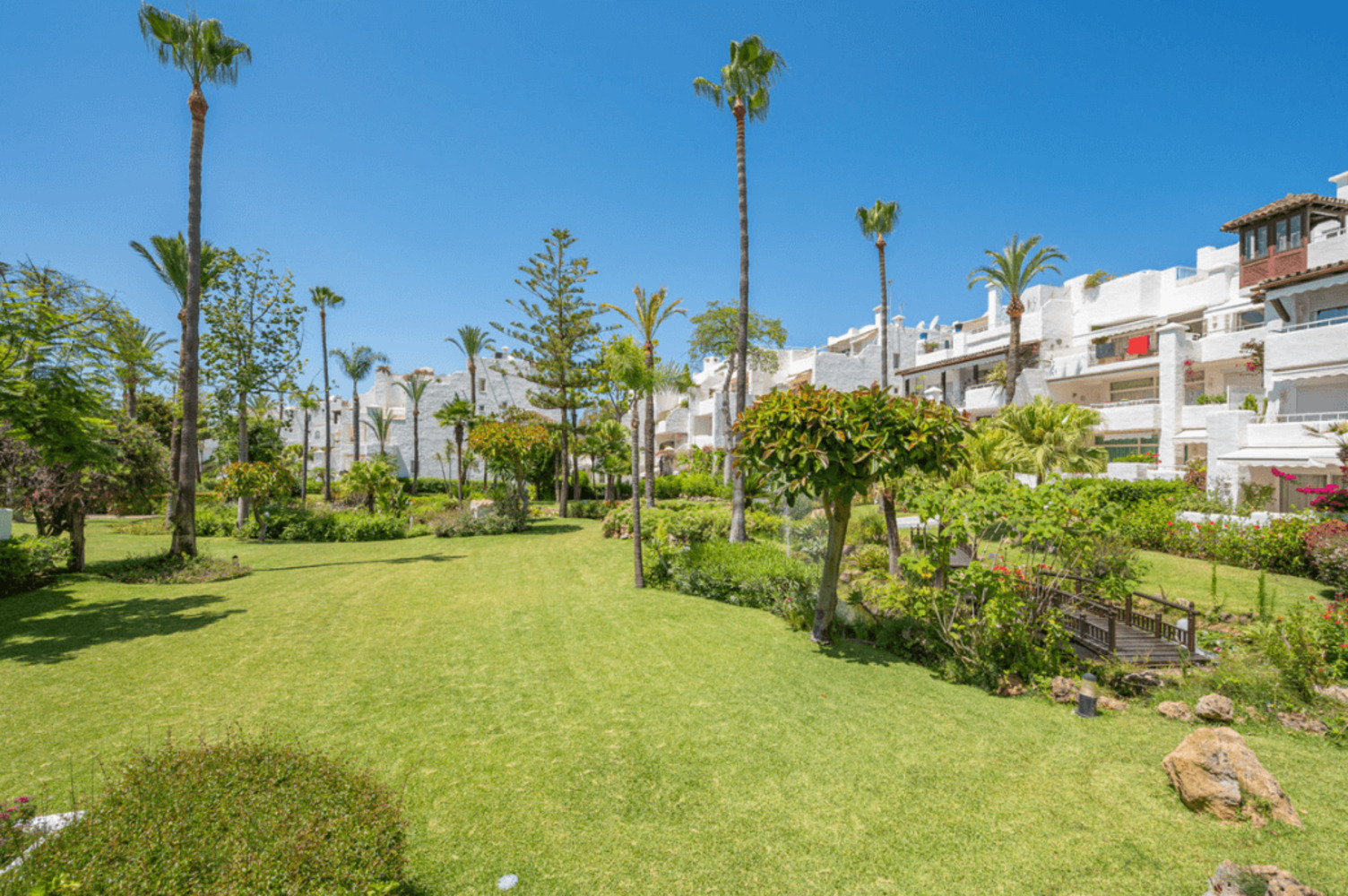 À l’origine composé d’une seule chambre, il dispose désormais d’une seconde petite chambre, ajoutant de la polyvalence à l’espace. L’appartement a été partiellement rénové et profite de superbes vues sur les jardins luxuriants et les fontaines d’Alhambra del Mar.