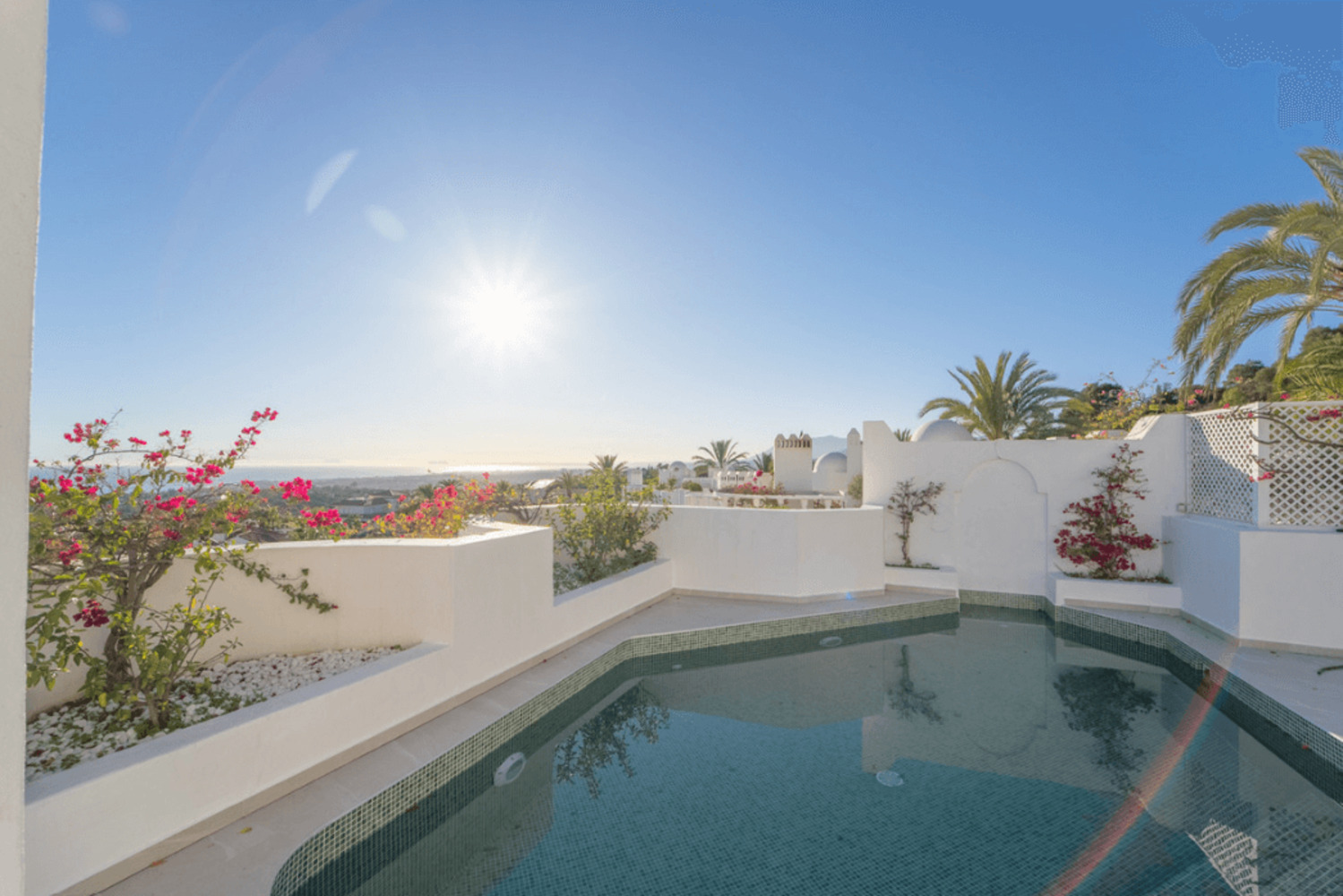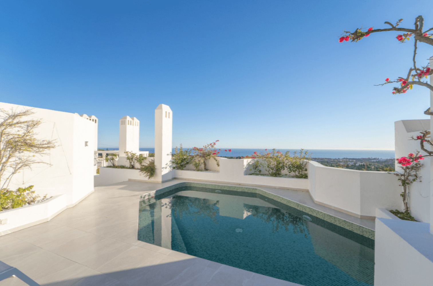 À l’étage supérieur, vous trouverez une chambre supplémentaire, une salle de bains, une buanderie et un accès direct à une terrasse privée spectaculaire avec piscine et espace barbecue. Cet espace extérieur, idéal pour recevoir ou se détendre, offre des vues panoramiques imprenables sur la mer et la montagne.