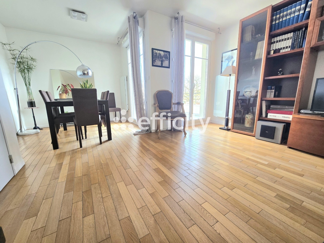 PARQUET CHENE PARTOUT, TRES BON ETAT, GRANDE TERRASSE, A PROXIMITE DES COMMERCES, DES LIGNES DE BUS ET AU CALME.