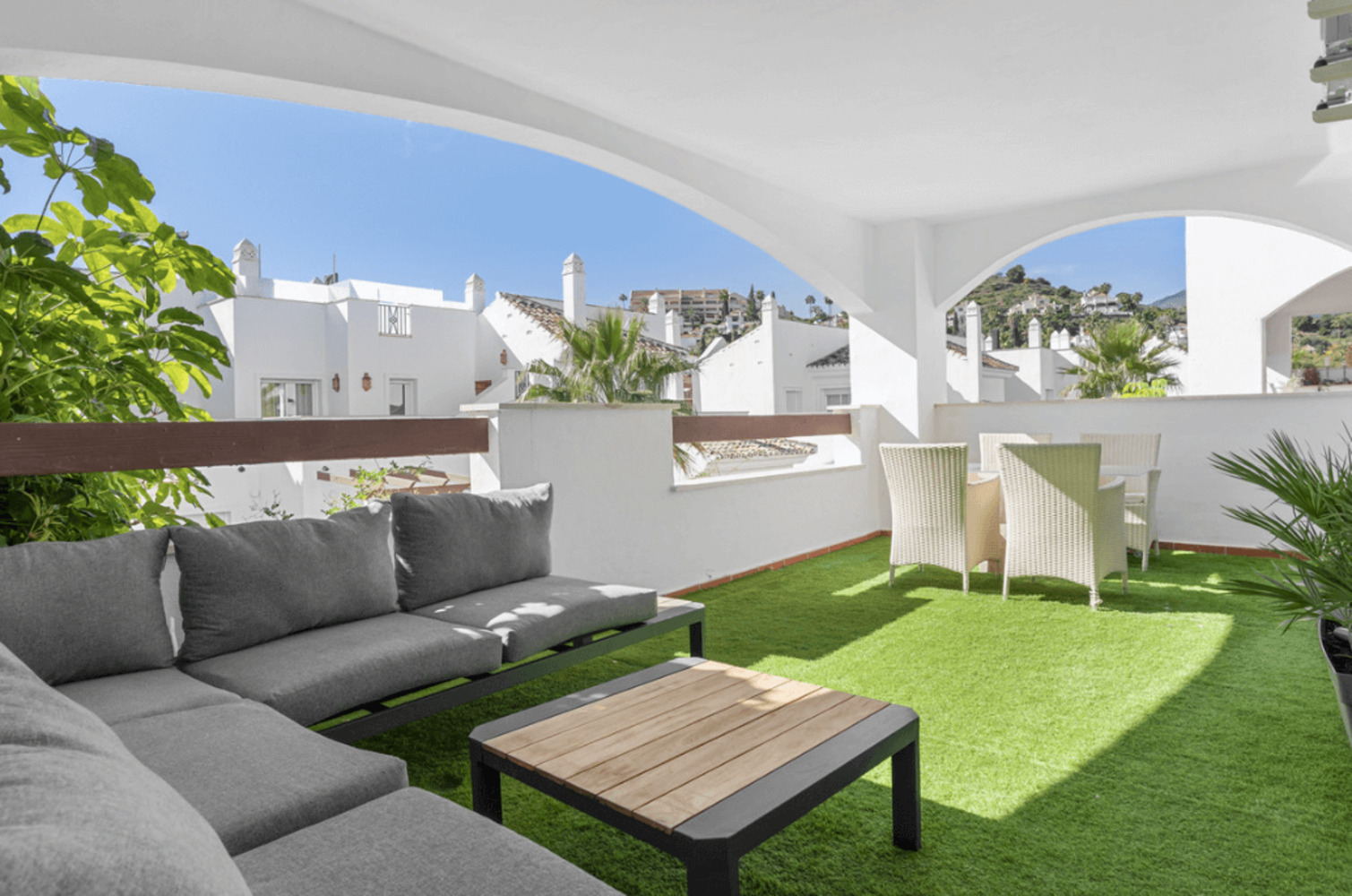 La résidence sécurisée propose de magnifiques jardins tropicaux parfaitement entretenus, une grande piscine avec solarium, et se trouve à quelques minutes des meilleurs golfs (Aloha, Los Naranjos, Las Brisas), des restaurants, de Puerto Banús et des plages de Marbella. L’appartement bénéficie également d’une place de parking privée.