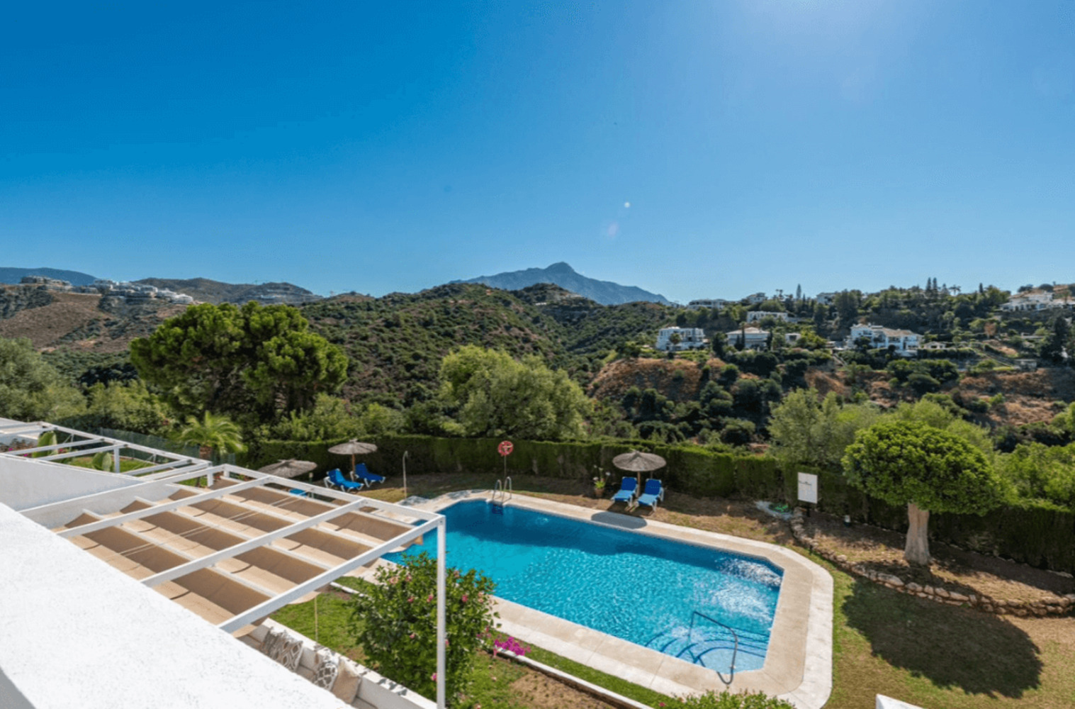 L’appartement comprend trois chambres et deux salles de bains, dont une suite parentale avec accès direct à la terrasse, garantissant intimité et tranquillité. La résidence El Mirador 2 est parfaitement entretenue et propose une piscine commune, dans un environnement paisible et verdoyant.