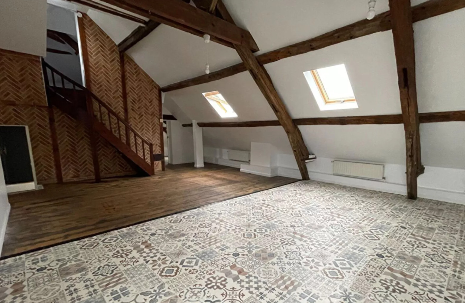 Il se compose d’une vaste pièce de vie avec cuisine équipée, de trois chambres, d’une salle de bains et de toilettes séparées. Le chauffage est individuel au gaz, par radiateurs.