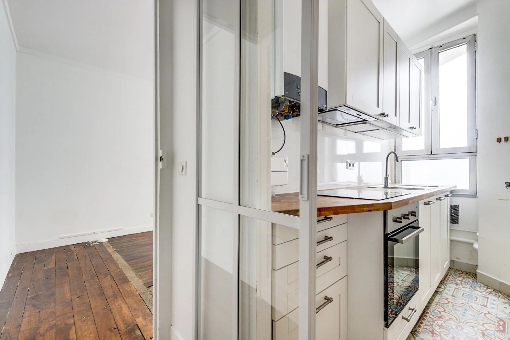 PARIS 20 - GAMBETTA / DUPONT DE L'EURE - CHARMANT 2 PIECES GAMBETTA - RUE DUPONT DE L'EURE - Idéalement situé, au Rez-de-Chaussée d'un bel immeuble haussmannien avec ascenseur, ce grand 2 pièces séduit par son calme absolu et son cachet préservé. Avec une hauteur sous plafond de 2,80 m, un parquet ancien et de grandes ouvertures, il propose une ambiance chaleureuse et accueillante - L'appartement se compose de : une entrée avec rangements, un séjour agréable à vivre, une belle cuisine équipée et fonctionnelle, une chambre confortable avec rangements, une jolie salle de bains aménagée avec fenêtre et espace pour lave-linge - Chauffage individuel au gaz (chaudière changée en 2023), double vitrage pour un confort optimal - Un bien coup de coeur, alliant charme, tranquillité et fonctionnalité. A visiter sans tarder ! (4.80 % honoraires TTC à la charge de l'acquéreur.) Copropriété de 40 lots - dont 24 lots habitation. (Pas de procédure en cours) \n\r Charges annuelles : 1200 euros.