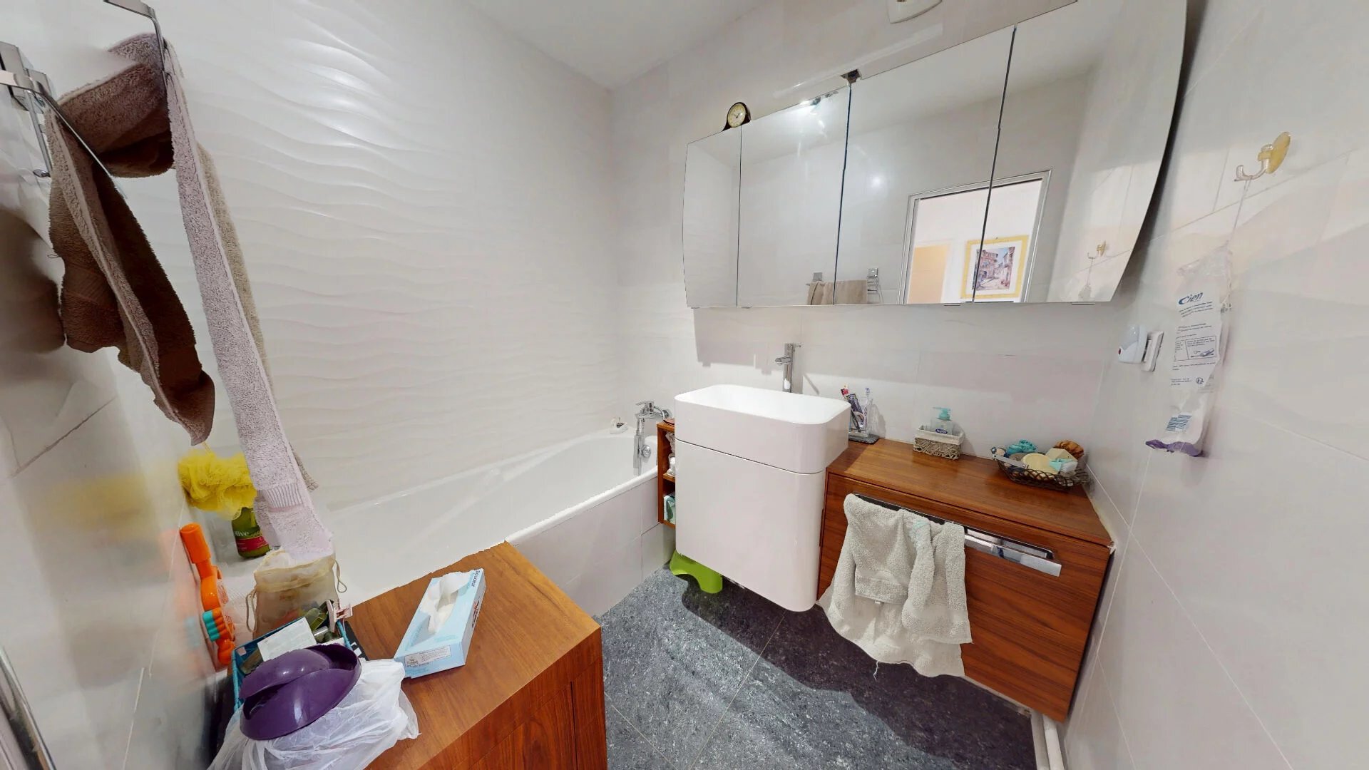 PANTIN | HOCHE | 4 PIÈCES | 84 M² | TRAVERSANT | GRANDS BALCONS | ÉTAGE ÉLEVÉ | VUE DÉGAGÉE | CAVE + PARKING BOXÉ PANTIN | HOCHE | 4 PIÈCES | 84 M² | TRAVERSANT | GRANDS BALCONS | ÉTAGE ÉLEVÉ | VUE DÉGAGÉE | CAVE + PARKING BOXÉ | Situé dans un immeuble bien entretenu des années 70, au 6e étage sur 17 avec ascenseur, cet appartement de 4 pièces 84 m², vous séduira par sa luminosité, son exposition traversante Est/Ouest, et sa vue dégagée sur les toits de Pantin. Un cadre de vie paisible et fonctionnel, à proximité immédiate des transports, écoles, commerces et commodités du coeur de ville de Pantin et de la rue Hoche. Un intérieur spacieux et bien agencé : L'entrée en étoile, avec ses grandes dalles de carrelage et ses rangements intégrés, dessert harmonieusement l'ensemble des pièces. Le séjour de 23,5 m², lumineux grâce à ses portes-fenêtres exposées Ouest/Nord-Ouest, s'ouvre sur un balcon ensoleillé avec une belle vue dégagée. Idéal pour se détendre ou partager un repas en plein air. La cuisine indépendante (10 m²), aménagée et équipée, dispose d'un accès direct à un second balcon exposé Est, avec vue dégagée. Un espace parfait pour cuisiner en toute convivialité. Trois chambres confortables : Chambre 1 (9,2 m²) : accès direct au balcon Ouest, placard/penderie intégré, parquet flottant au sol, et double porte sur le séjour. Chambre 2 (10 m²) : exposition Est, vue dégagée, placard intégré, parquet. Chambre 3 (9,95 m²) : parquet au sol, grand dressing, fenêtre exposée Est, belle clarté. Deux salles d'eau pour plus de confort : Une salle d'eau avec douche carrelée, lavabo, VMC. Une salle de bain indépendante avec baignoire, meuble vasque et VMC. WC séparés avec carrelage mural. Un grand placard indépendant complète l'espace intérieur, idéal pour optimiser le rangement. Prestations complémentaires : Hauteur sous plafond : 2,60 m. Une cave en sous-sol. Box fermé pour stationnement sécurisé. Un emplacement pratique et recherché : A proximité des écoles, des commerces et des transports. Cadre résidentiel calme tout en restant connecté à Paris et aux zones d'activités environnantes. A découvrir rapidement ! Un bien rare offrant volume, luminosité et potentiel, parfait pour une famille ou un couple souhaitant personnaliser leur futur chez-soi.