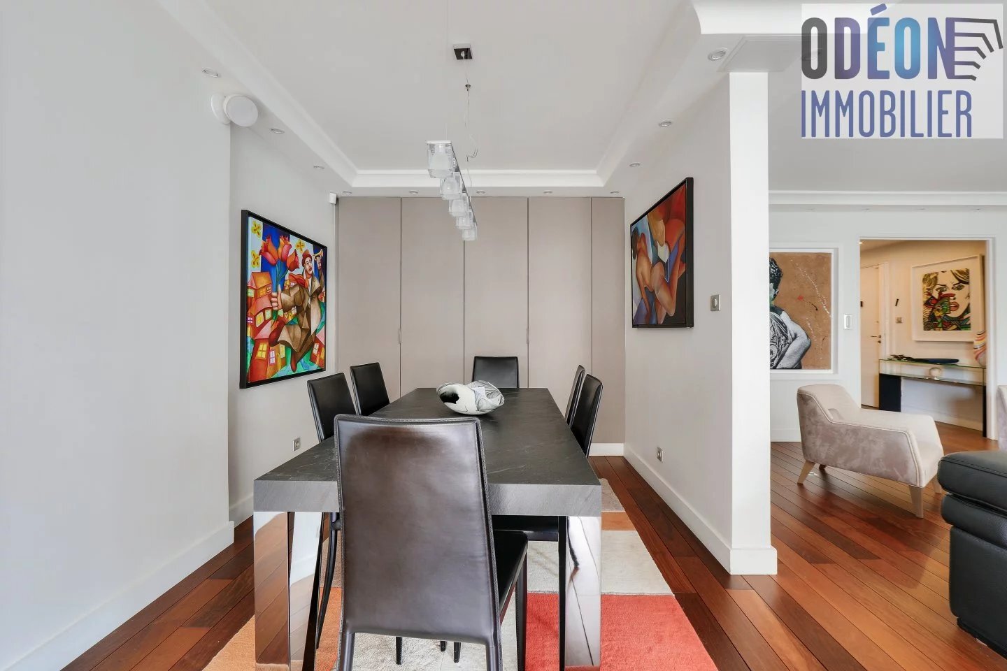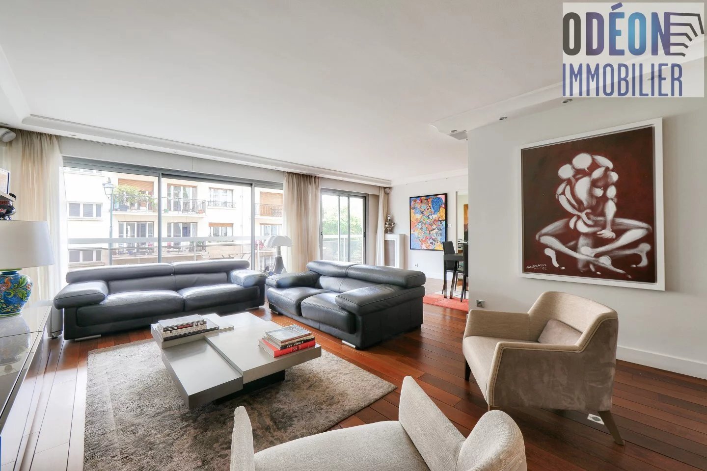 5 Pces Saint-Mandé Bois - 112 m² + balcon - 1.200.000 uros Avenue Sainte-Marie, proche Bois. Immeuble récent 1970, au 2è étage avec ascenseur. Bel appartement familial et de réception en parfait état comprenant: Entrée. Grand séjour et salle à manger avec baies vitrées donnant sur balcon de 12,45 m². Cuisine entièrement équipée. 3 chambres avec penderies. Salle de bains, salle de douche, wc japonais indépendant. Appartement double exposition ayant un plan parfait. Grand dressing et nombreux rangements. Parquet en palissandre, décoration raffinée. Chauffage et eau chaude collectifs immeuble, double vitrage. Très calme et ensoleillé. Parking double 2 voitures et cave en sous-sol. Emplacement résidentiel recherché. Contacter 06.14.30.93.53 ou alain@odeonimmobilier.fr (4.17 % honoraires TTC à la charge de l'acquéreur.) Copropriété de 28 lots - dont 18 lots habitation. (Pas de procédure en cours) \n\r Charges annuelles : 6600 euros.