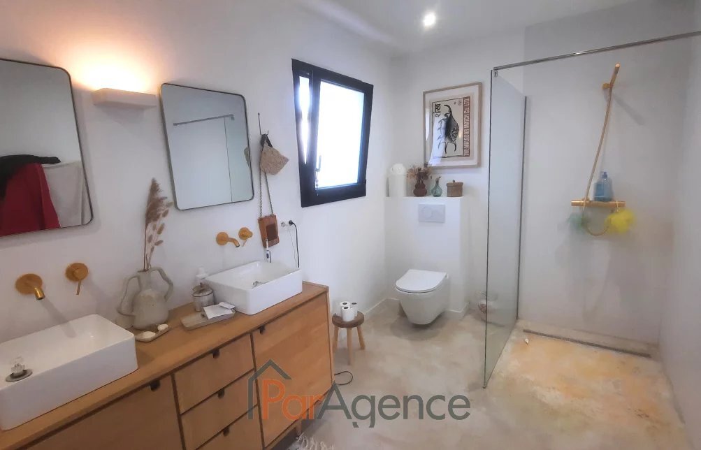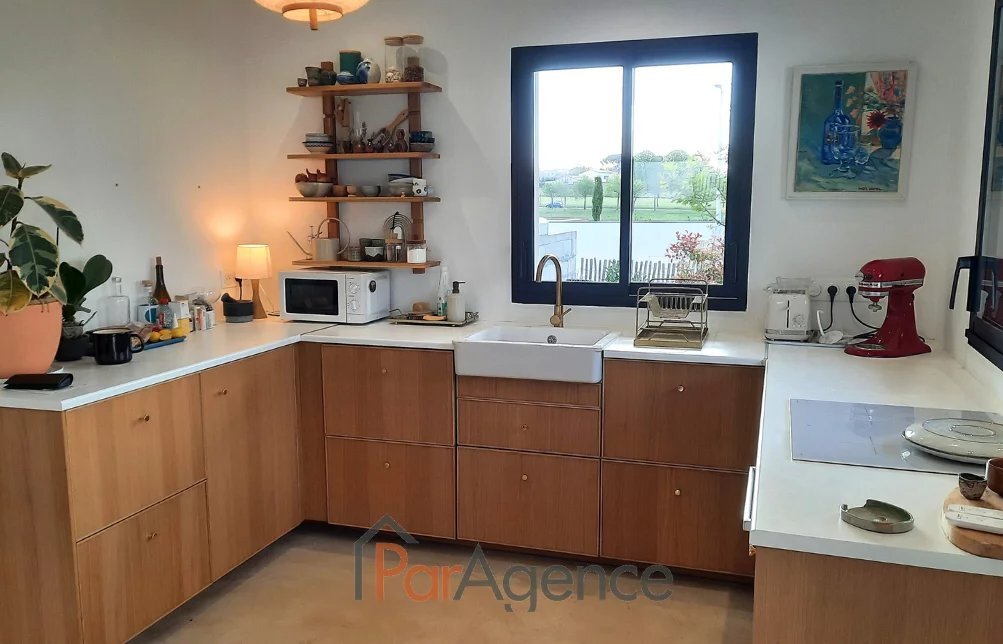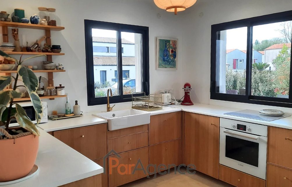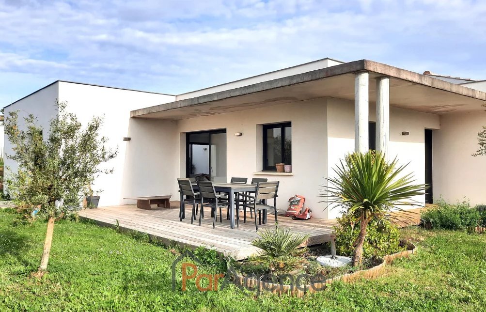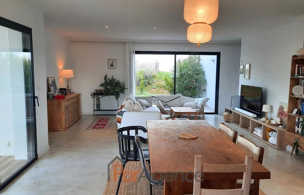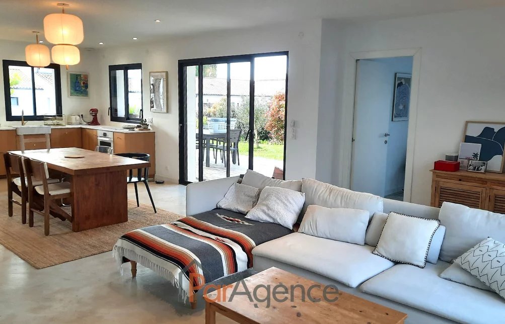900 M CENTRE VILLE 700 M DU VAL LUMIERE 104 M2 VAUX SUR MER, à 600 m des commerces du Val Lumière et à 900 m du centre-ville, maison récente de 2021 en parfait état de quatre pièces principales pour 104 m2 habitables environ et comprenant: séjour de 52m2 avec cuisine à l'américaine équipée ouvrant sur terrasse exposée sud, patio et jardin, trois chambres ouvrant sur jardin dont une suite parentale avec salle d'eau et wc, salle de bains, wc. Patio intérieur. Chauffage au sol par pompe à chaleur. Norme RT 2012. En annexe : Un garage. Le tout édifié sur un terrain clos et paysager de 523m2. Les informations sur les risques auxquels ce bien est exposé sont disponibles sur le site Géorisques : www.georisques.gouv.fr. Honoraires agence à la charge du vendeur. https://www.par-agence.fr/nos-honoraires.