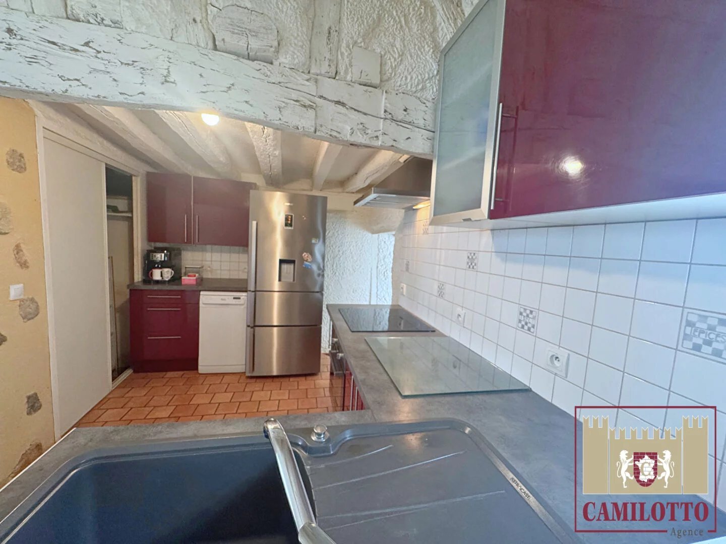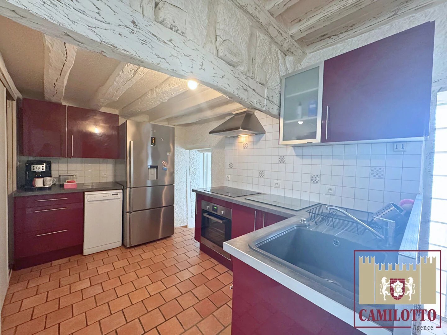 Maison ancienne Nogent Le Roi Nogent-le-Roi ? Maison ancienne en plein coeur de ville Située en centre-ville de Nogent-le-Roi, à seulement 15 minutes de la gare de Maintenon et 50 minutes de Paris-Montparnasse, cette maison ancienne combine authenticité et confort moderne. Le rez-de-chaussée vous accueille avec une entrée donnant sur un chaleureux espace de vie comprenant séjour et salle à manger, agrémentés d'un poêle à granulés pour des moments conviviaux. La cuisine ouverte, aménagée et équipée, apporte fonctionnalité et modernité. Une chambre, une buanderie, un WC indépendant ainsi qu'un espace de rangement complètent ce niveau. À l'étage, un palier distribue une chambre supplémentaire, un bureau idéal pour le télétravail, ainsi qu'une salle de bains double vasque avec dressing attenant, garantissant confort et praticité au quotidien. Son emplacement central permet un accès immédiat aux commerces, écoles et services. Côté pratique, une place de stationnement est disponible à la location à proximité. ? Une opportunité rare en coeur de ville, parfaite pour une résidence principale ou secondaire. ? Pour en savoir plus ou organiser une visite, contactez l'Agence Camilotto au 02 37 51 11 75. (7.14 % d'honoraires TTC à la charge de l'acquéreur.)