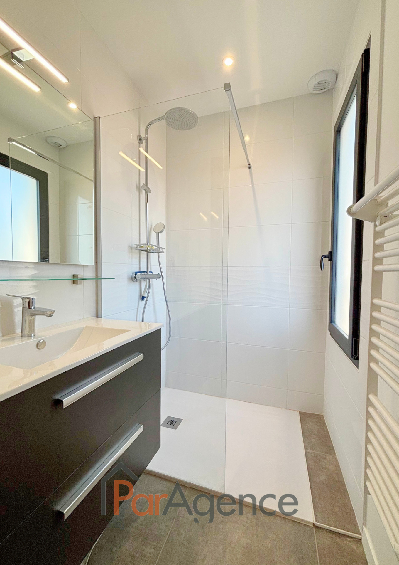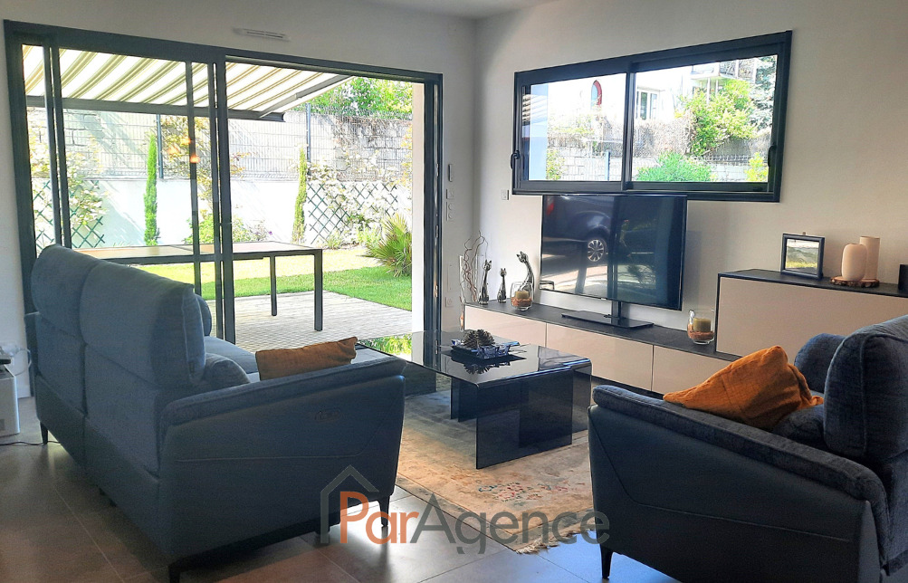 VAUX SUR MER, à 1 km du centre-ville et à 1,3 km de la plage de Pontaillac, maison récente construite en 2023, en parfait état, de quatre pièces principales pour 104 m2 habitables environ et comprenant : entrée avec placard, séjour avec cuisine à l'américaine équipée ouvrant sur terrasse avec store et jardin, dégagement desservant une chambre ouvrant sur jardin avec salle d'eau, wc. A l'étage : palier desservant deux chambres avec dressing, salle d'eau, wc. Chauffage au sol par pompe à chaleur. Pergola, abri de jardin. Possibilité de stationner sur le terrain. Terrain clos et arboré de 343m2. Les informations sur les risques auxquels ce bien est exposé sont disponibles sur le site Géorisques : www.georisques.gouv.fr. https://www.par-agence.fr/nos-honoraires. Honoraires agence à la charge de l'acquéreur. Prix 582400EUR dont honoraires d'agence à la charge de l'acquéreur 4% TTC soit 22400EUR (560000EUR hors honoraires)
