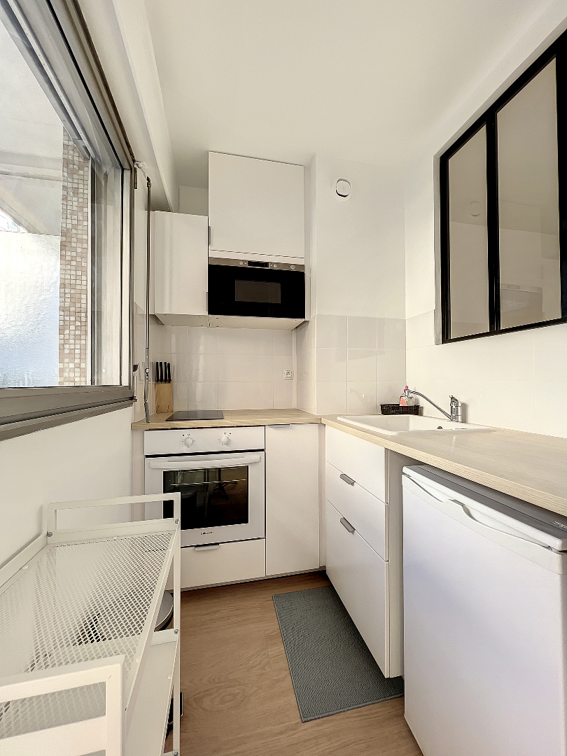 ASNIÈRES SUR SEINE - rue d'Anjou Au pied de la gare d'Asnières, très joli studio meublé entièrement rénové et comprenant entrée, salle d'eau avec wc, séjour avec placard, cuisne aménagée et équipée semi ouverte. Balcon. CAVE en sous-sol. Chauffage et eau chaude collectifs. Disponible le 27/08/2025 : Frais d'actes de location : 399.30 eurosTTC ( SI BAIL LOI 89)