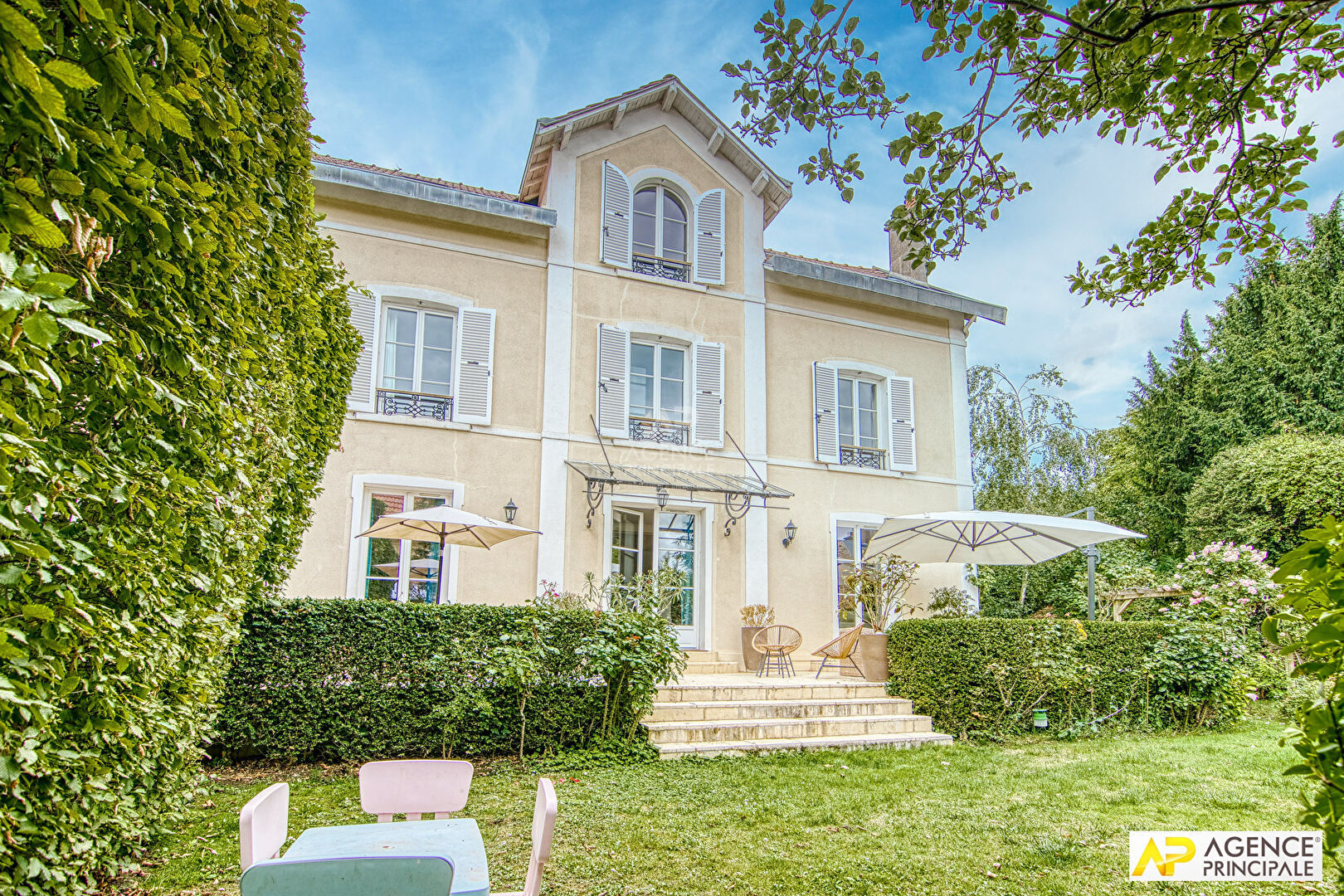 Bien et adresse d'exception en plein coeur de Versailles ! Située à quelques pas des commerces, écoles de renom et du château, cette élégante maison de maître du XIXe siècle conjugue charme historique et prestations contemporaines. Sa terrasse de plain-pied et son terrain de 600m² sans aucun vis-à-vis, clos joliment arboré et paysagé offrent intimité et calme absolu ! Sa surface habitable de 349,19 m² et de 427,23 m² au sol offre de spacieux volumes sur quatres niveaux et une agréable ventilation des espaces de vie, cette maison de charme est idéale pour y vivre en famille ! Dès l'entrée, vous serez séduit par une vaste galerie desservant un bureau avec verrière atelier, vestibule, toilettes invités, une grande cuisine dinatoire ouverte, soigneusement aménagée de placards menuisiers et entièrement équipée bénéficiant d'un îlot central, une très belle double pièce de réception séjour / salle à manger (bénéficiant d'une cheminée fonctionnelle) baignée de lumière et ouvrant sur la terrasse de plain-pied et le jardin élégamment paysagé ! L'accès aux étages se pratique par 2 beaux escaliers : Au 1er étage "l'espace enfants" propose cinq chambres dont une grande pièce pouvant faire office d'espace de bureau, de jeux ou de salon TV, trois salles de bains dont une avec baignoire et douche, deux toilettes séparés. Au 2ème étage "l'espace parents" accueille une charmante suite parentale se composant d'une grande chambre équipée d'une climatisation, un bel espace de dressing en placards menuisiers, une salle de bains avec baignoire, douche et toilette, et un espace bureau avec dressing sur mesure. Un sous-sol est aménagé comprenant plusieurs espaces dont un studio indépendant (idéal pour employée de maison) équipé d'un coin cuisine avec sa salle de bains, divers espaces de rangement, une buanderie, une petite pièce pouvant faire office de salle de sport, une cave à vin, un atelier. Maison disposant d'un système d'alarme sur abonnement Jardin privatif clos, garage automatique avec 2 emplacements de stationnement, abris vélos Entretien jardin à la charge exclusive du locataire Passage d'un jardinier pris en charge par le bailleur 2 fois par an pour la taille des haies et des grands arbres. Chauffage individuel au gaz (chaudière Frisquet) PRODUIT RARE A LA LOCATION ! Disponible au 1er août 2025 !