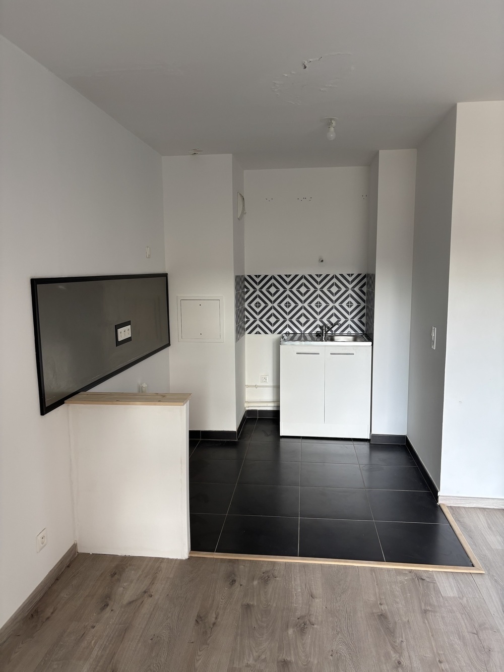 Rue de Lorraine, proche des stations de bus et à 9' de la gare de Mantes la Jolie (TER,TGV, Intercités, ligne J et N), commerces, cinéma, écoles, lycée et square. Dans un immeuble récent (2017), un appartement de type F2 (211) situé au premier étage comprenant : une entrée, un séjour avec une cuisine aménagée et équipée en plaques et hotte, une chambre et une salle de bains avec WC.