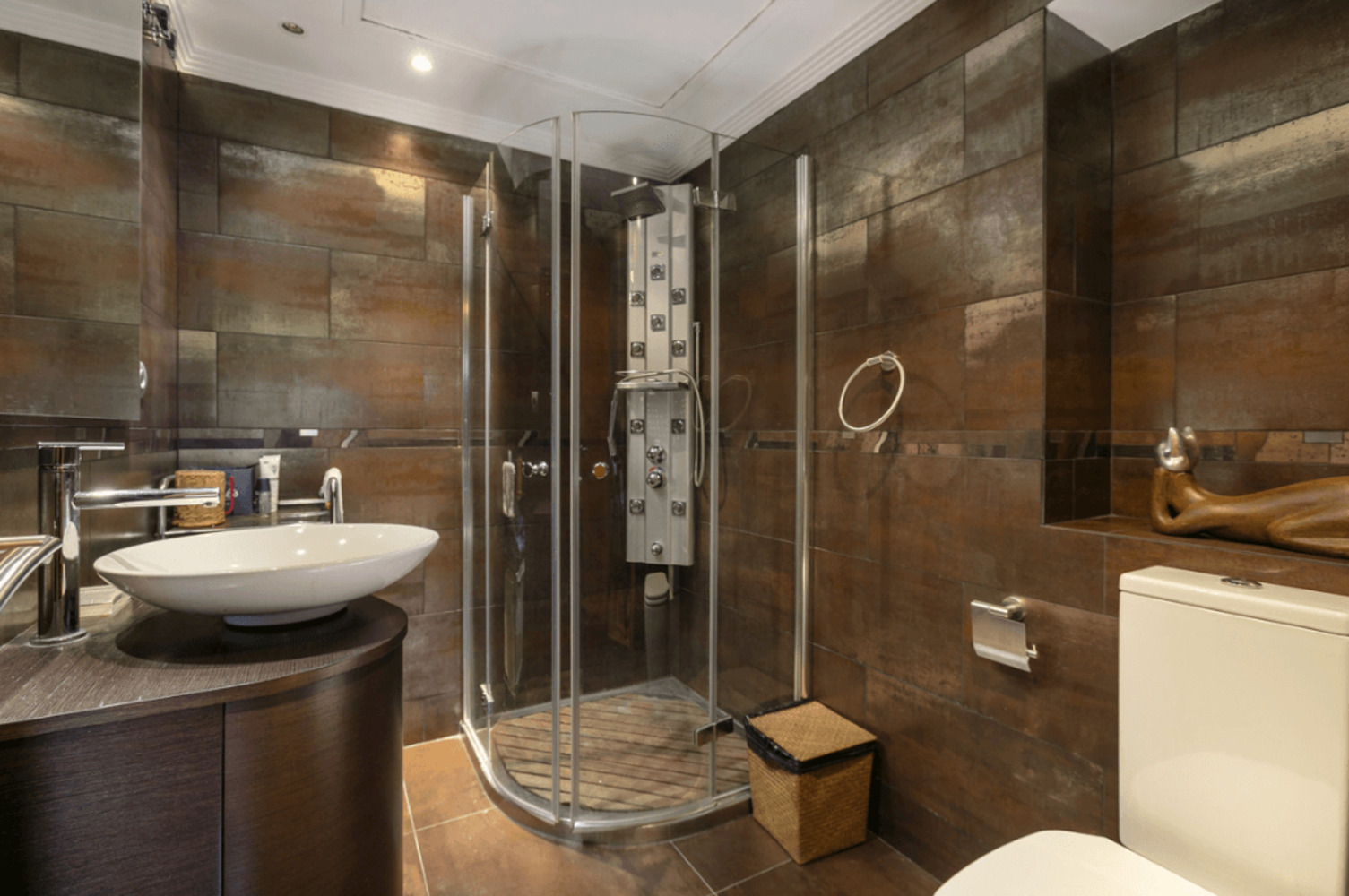 Parmi les prestations : climatisation réversible, dressings sur mesure, sols en marbre, parking privé et système d’entrée vidéo.