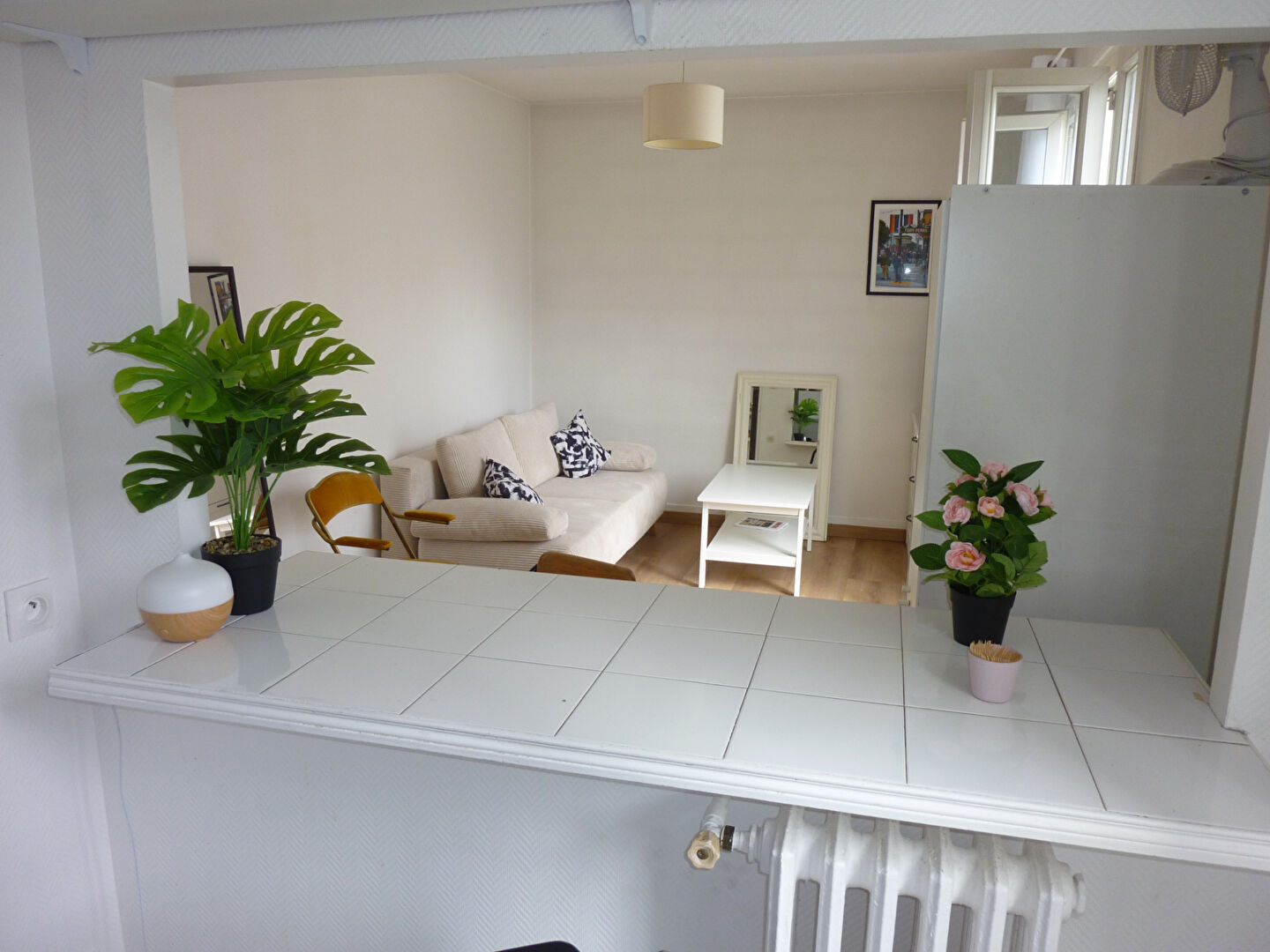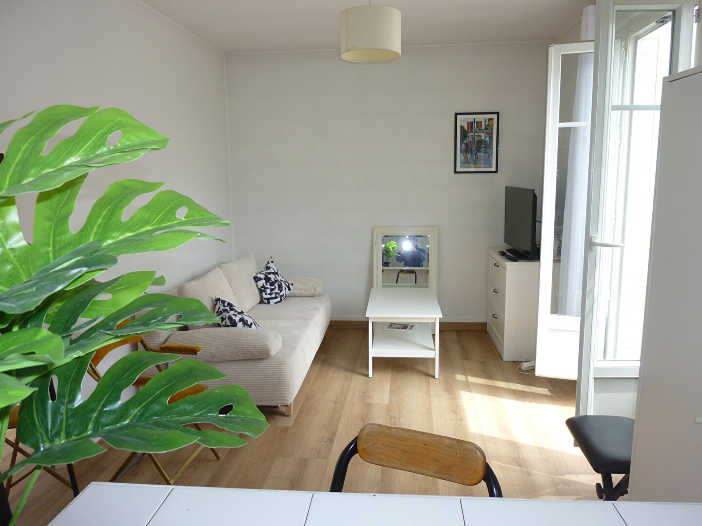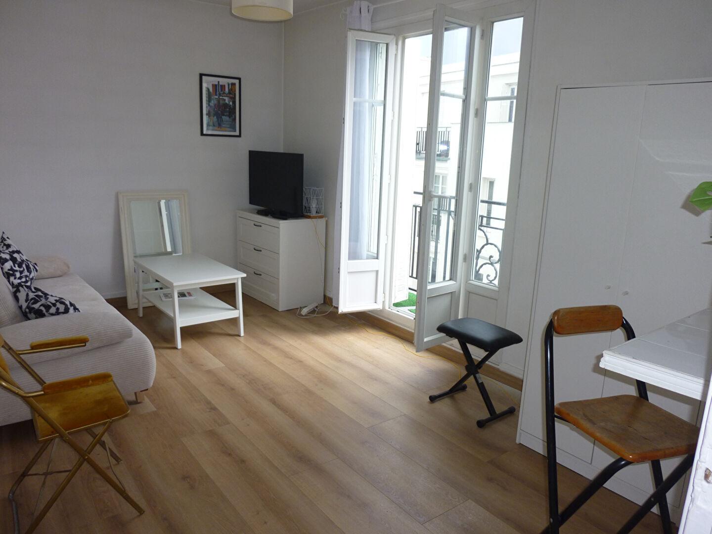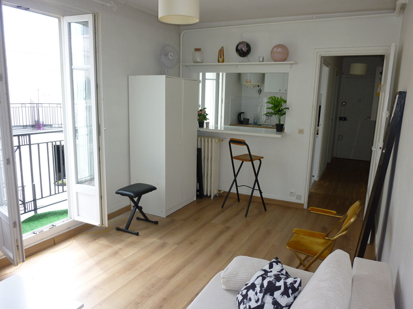 métro Jules Joffrin ou Porte de Clignancourt .Location meublé, studio de 26 m² au dernier étage avec ascenseur. avec entrée, séjour/cuisine américaine, salle d'eau avec wc, balcon. chauffage collectif inclus, bon état, local vélos.