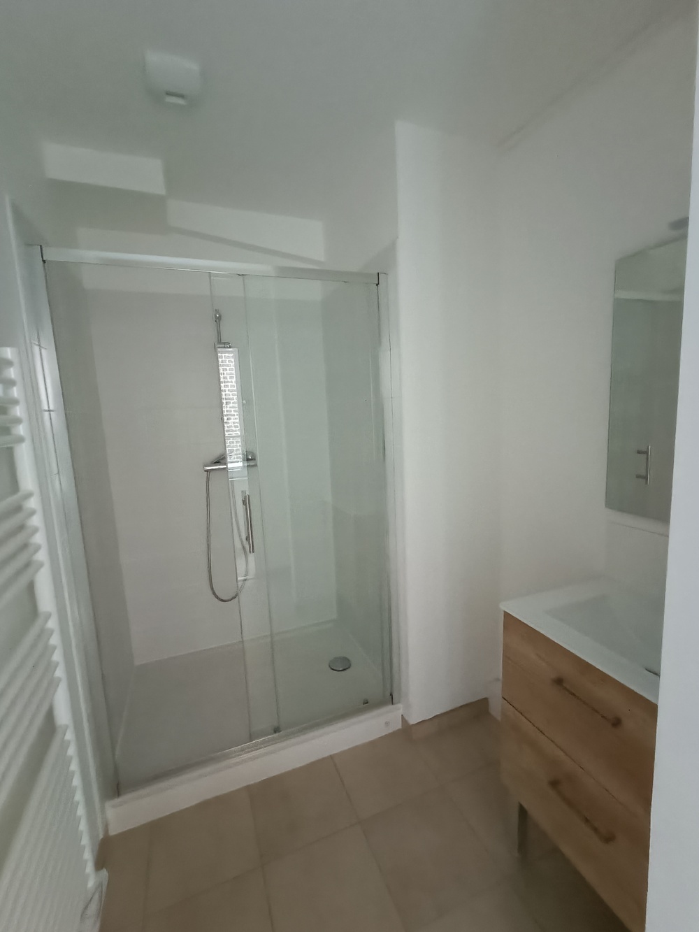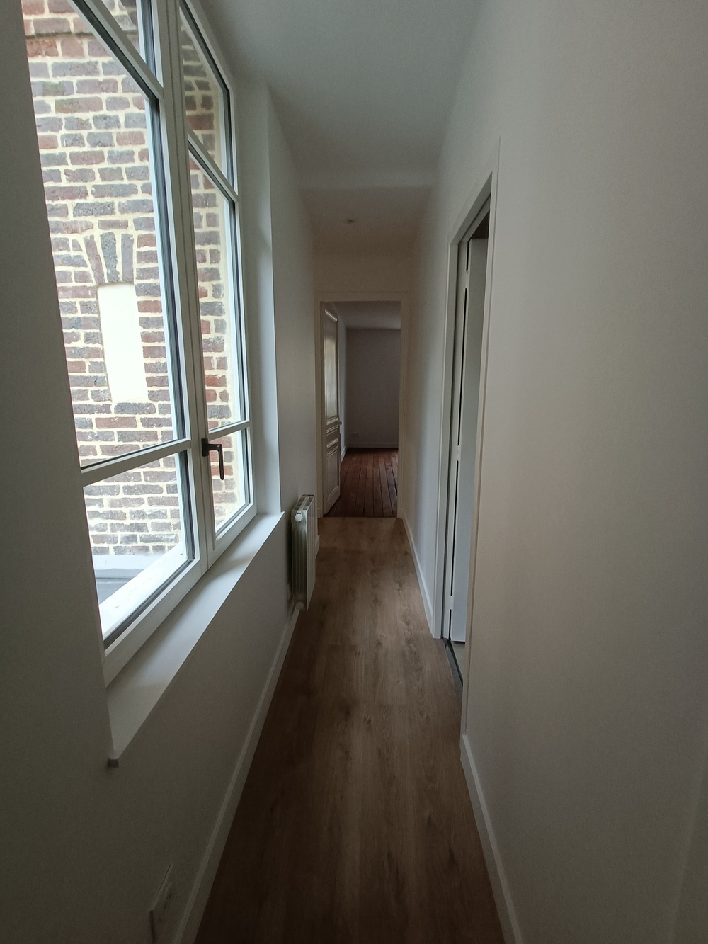 Un dégagement desservant une salle d'eau et une chambre donnant sur arrière cour.