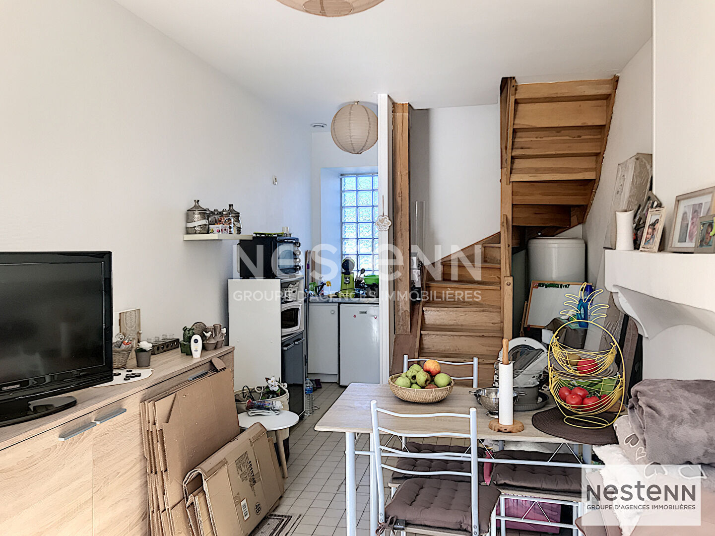 Petite maisonnette mitoyenne, en bout d'impasse, dans un lotissement calme et agréable. Celle-ci vous offre, au rez-de-chaussée, un séjour avec cheminée décorative ainsi qu'une kitchenette qui sera refaite prochainement. A l'étage : petit couloir donnant accès à une petite chambre de 8.46m² et une salle de bain avec WC. Une petite cour clôturée, privative, ainsi qu'une place de parking privative viennent compléter l'ensemble. Disponible fin octobre. Loyer : 430 euros hors charges Dépôt de garantie : 430 euros (à verser une fois) Honoraires à la charge du locataire : 377 euros (à verser une fois) Pour plus de renseignement, contactez Manon au zéro sept 66 83 73 80 ou l'Agence Nestenn de St Gervais-la-Forêt au zéro deux 54 43 80 35