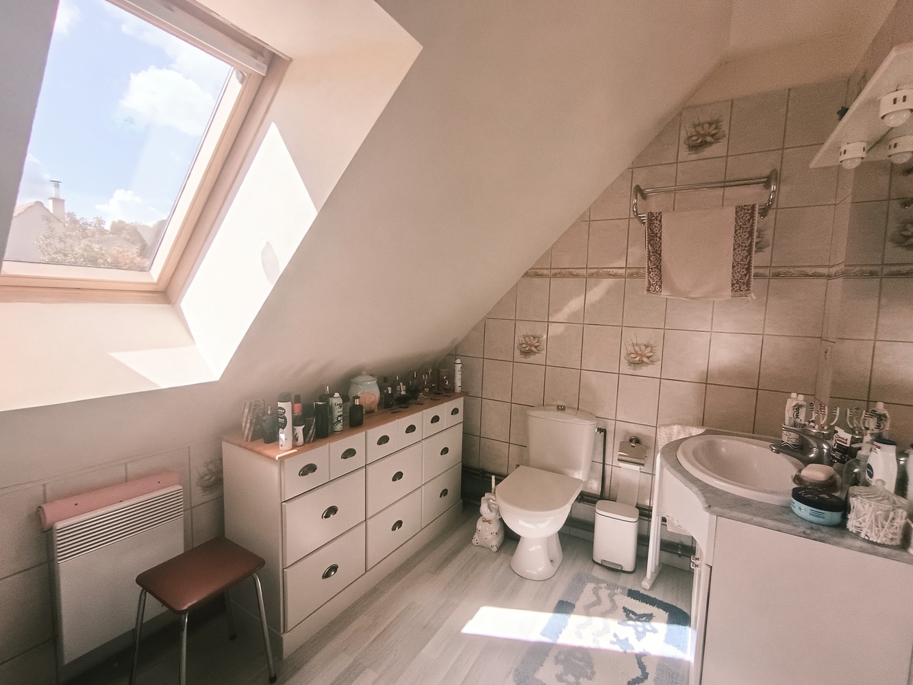 Au rez-de-chaussée, profitant d'un chauffage au sol et d'un poêle a granule, se trouve l'espace de vie ainsi qu'un WC et une première chambre et à l'étage trois autres chambre ainsi que la salle de bains. un garage vient compléter la maison afin de protéger votre véhicule des intempéries et vous offrira un espace de rangement supplémentaire et sécurisé.