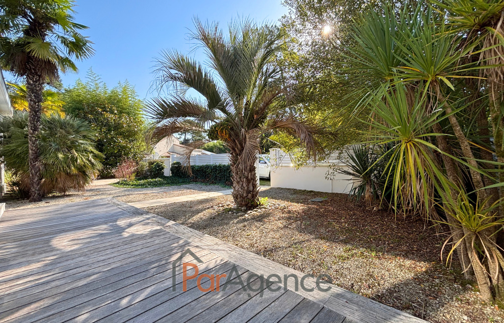 A SAINT-PALAIS-SUR-MER, à l'orée de la forêt et à 650 m de la plage de la Grande Côte, villa contemporaine de plain-pied des années 50, d'une surface habitable d'environ 153 m2 comprenant : une pièce à vivre lumineuse avec cheminée insert, une cuisine séparée aménagée et équipée ouvrant sur une vaste terrasse et la piscine, un bureau, un couloir desservant 3 suites parentales avec salle d'eau et wc, 1 suite parentale avec salle de bains et wc, wc séparé. Chauffage au fioul. Non attenant, un garage double et buanderie. Face à la pisicine, une pergola bioclimatique. Le tout sur un terrain clos et boisé de 3392 m2. Les informations sur les risques auxquels ce bien est exposé sont disponibles sur le site Géorisques : www.georisques.gouv.fr. Honoraires agence à la charge de l'acquéreur. Prix 738 400EUR dont honoraires d'agence à la charge de l'acquéreur 4 % TTC soit 28 400EUR (710 000EUR hors honoraires). https://www.par-agence.fr/nos-honoraires.