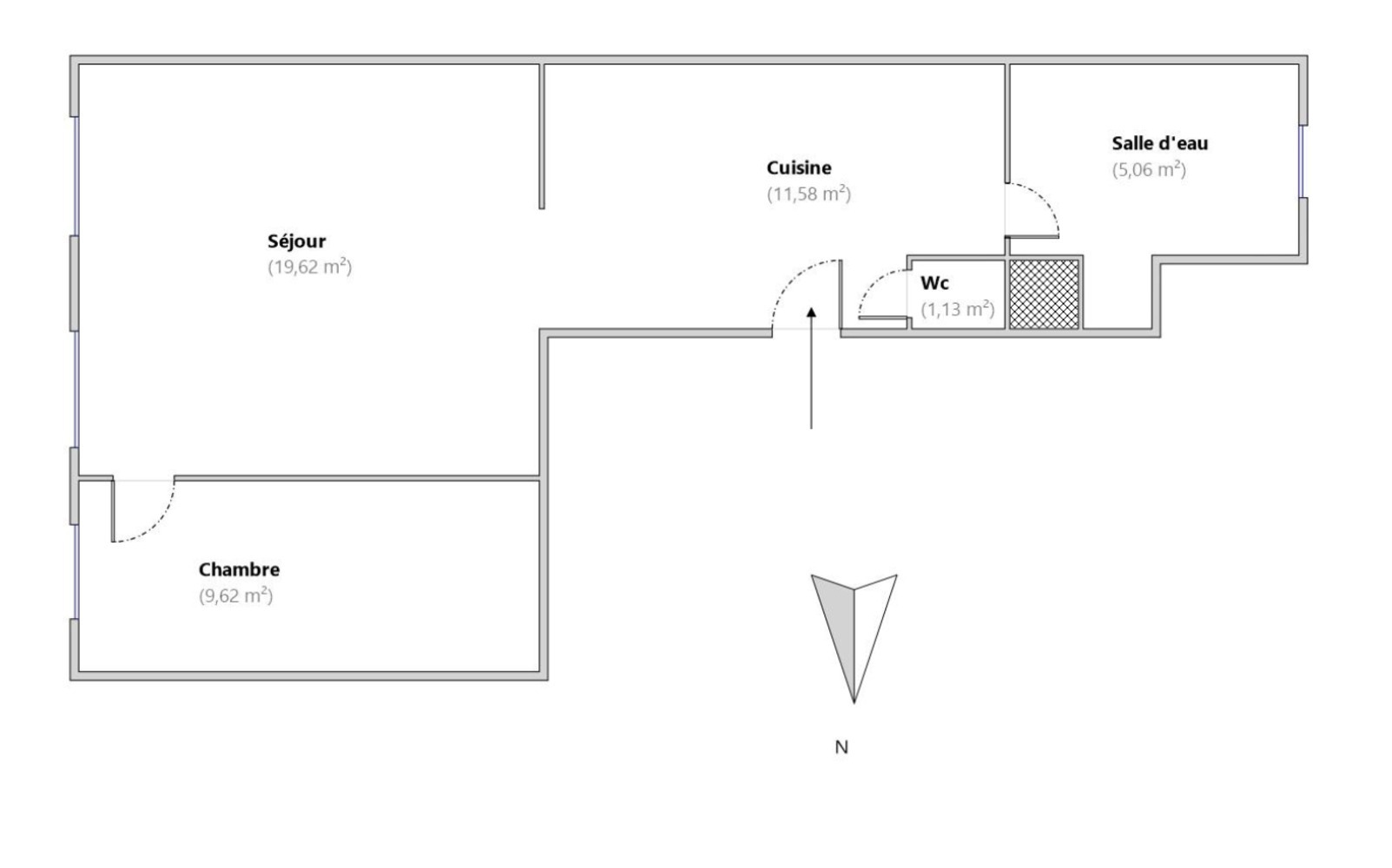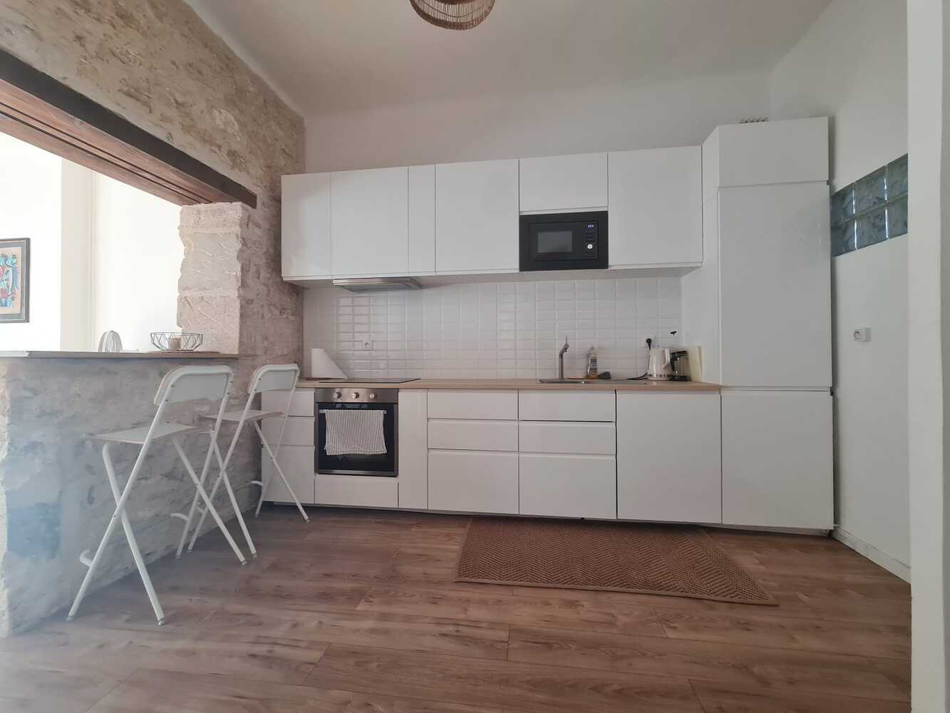 Cuisine ouvrant sur le séjour, chambre séparée.