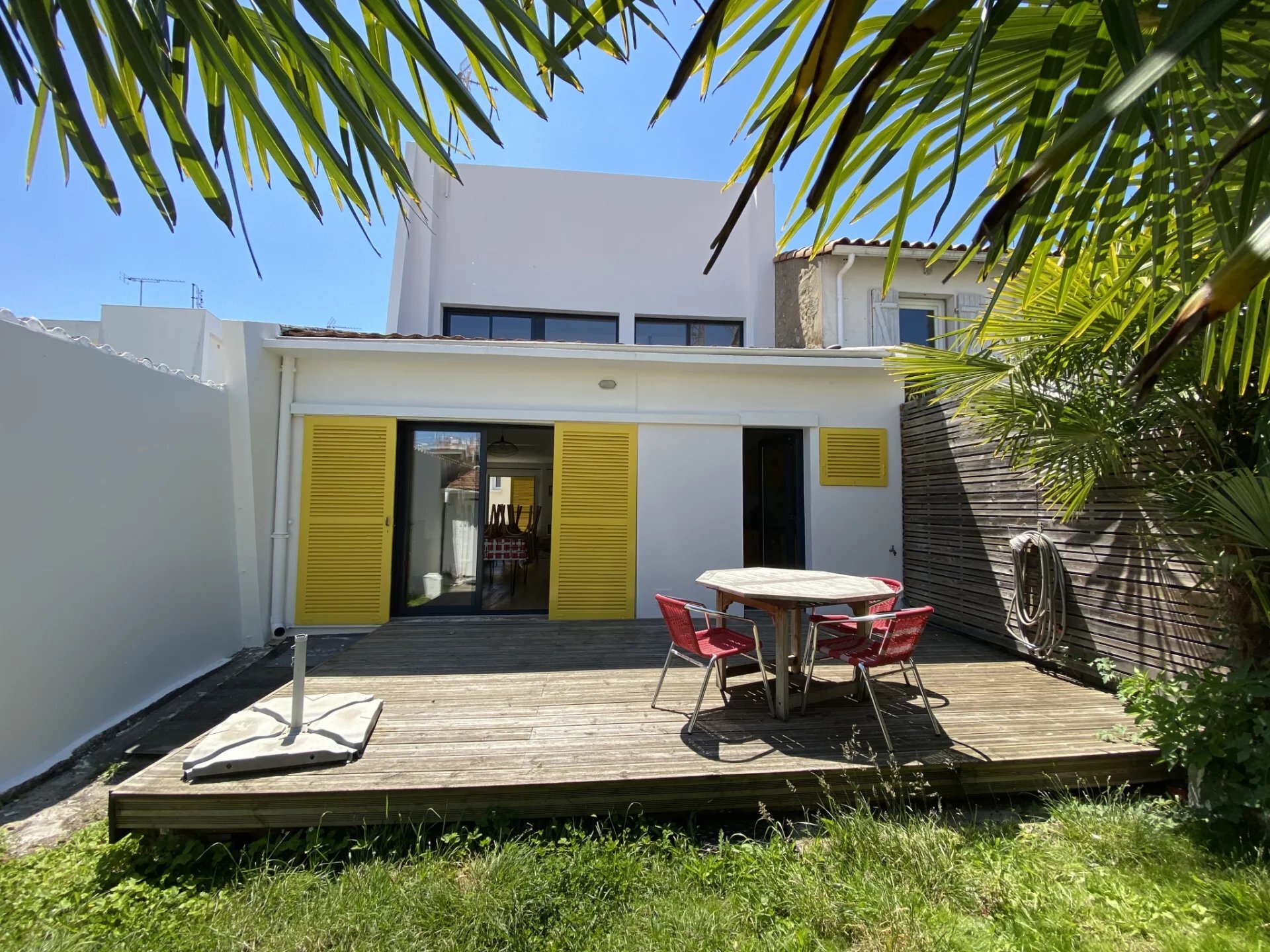 A LOUER - MAISON MEUBLEE ANNEE 50 HYPER CENTRE - GARAGE ET P ROYAN, maison meublée année 50 de 80,82 m2 située en plein centre-ville, proche de toutes les commodités. Elle comprend au rez-de-chaussée : une entrée, un salon, une salle à manger ouvrant sur jardinet, une cuisine ouverte aménagée et équipée, un dégagement, une salle d'eau et des WC séparés. À l'étage : un palier, deux chambres et une salle d'eau avec WC. La maison dispose aussi d'un jardinet avec abri de jardin, d'une terrasse bois et d'un garage attenant et communiquant. Disponible à partir 1er novembre. Les informations sur les risques auxquels ce bien est exposé sont disponibles sur le site Géorisques : www.georisques.gouv.fr. https://www.par-agence.fr/nos-honoraires.