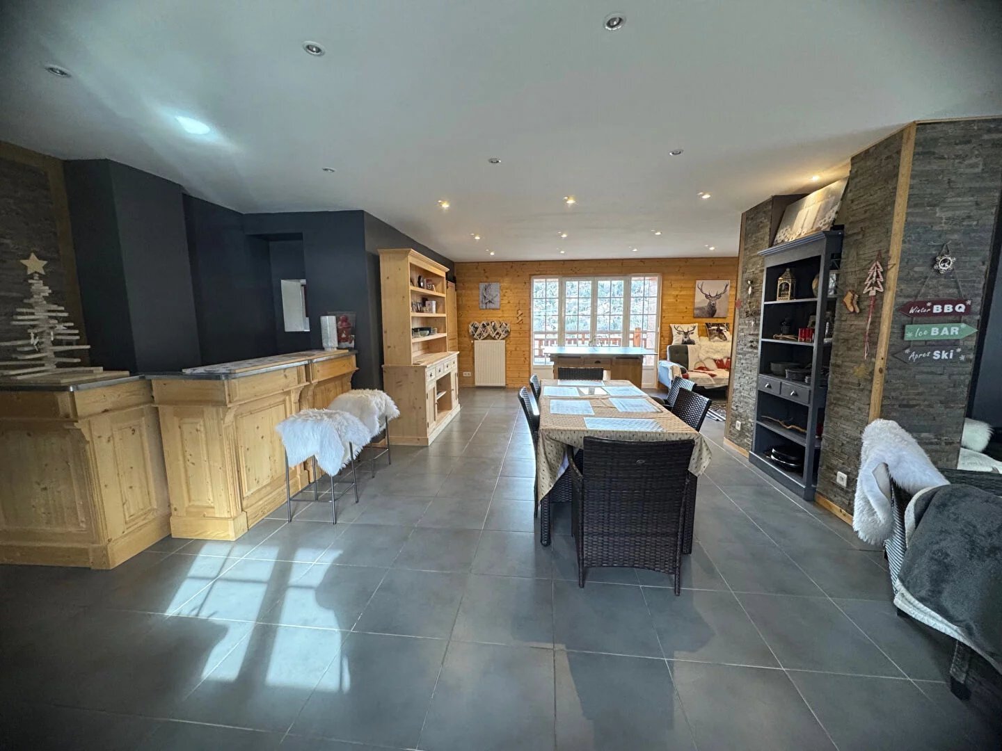 CHALET 880M² ALLOS ALLOS Ce chalet d'exception, situé sur un terrain privé de 1,7 hectare, offre 880 m² d'élégance et de confort, à proximité des pistes de ski. Entièrement rénové entre 2017 et 2019, il dispose de commodités telles que le chauffage central , de la fibre optique, tout en bénéficiant de vues imprenables sur les montagnes. Le niveau principal comprend un vaste séjour de 90 m², une cuisine équipée et deux chambres en suite. A l'étage, on trouve cinq chambres en suite, dont une avec salon privé. Le deuxième étage propose une suite familiale en duplex et un appartement de trois chambres. Au troisième étage, un grand appartement en duplex de 130 m² est également disponible. Le rez-de-jardin offre un espace de de bien etre ou d'activités et un appartement indépendant, avec un potentiel d'aménagement varié. Le chalet comprend un local à skis et 260 m² de terrasses accessibles depuis chaque niveau. Idéalement situé à Allos, proche des commerces et d'activités variées , ce chalet représente une opportunité unique dans un cadre exceptionnel en été comme en hiver.