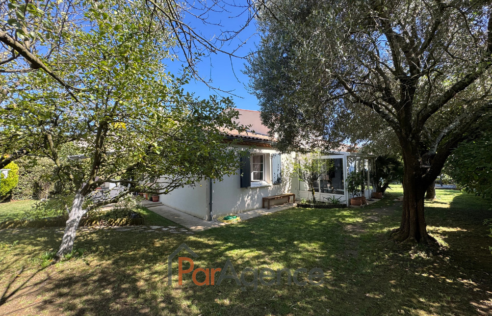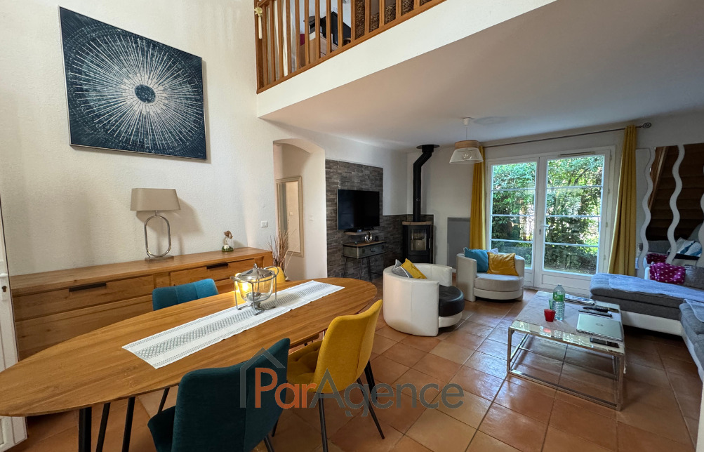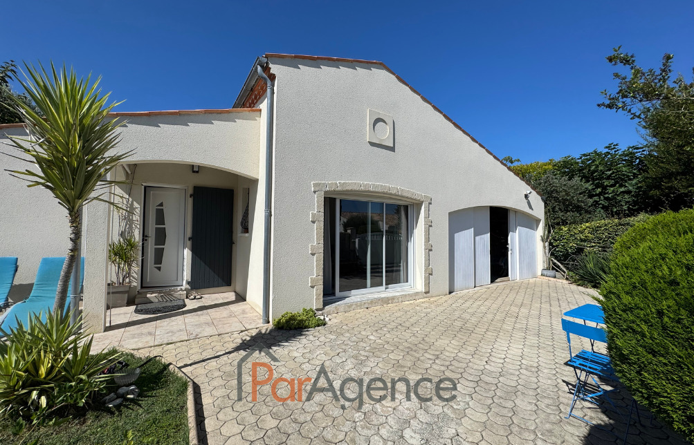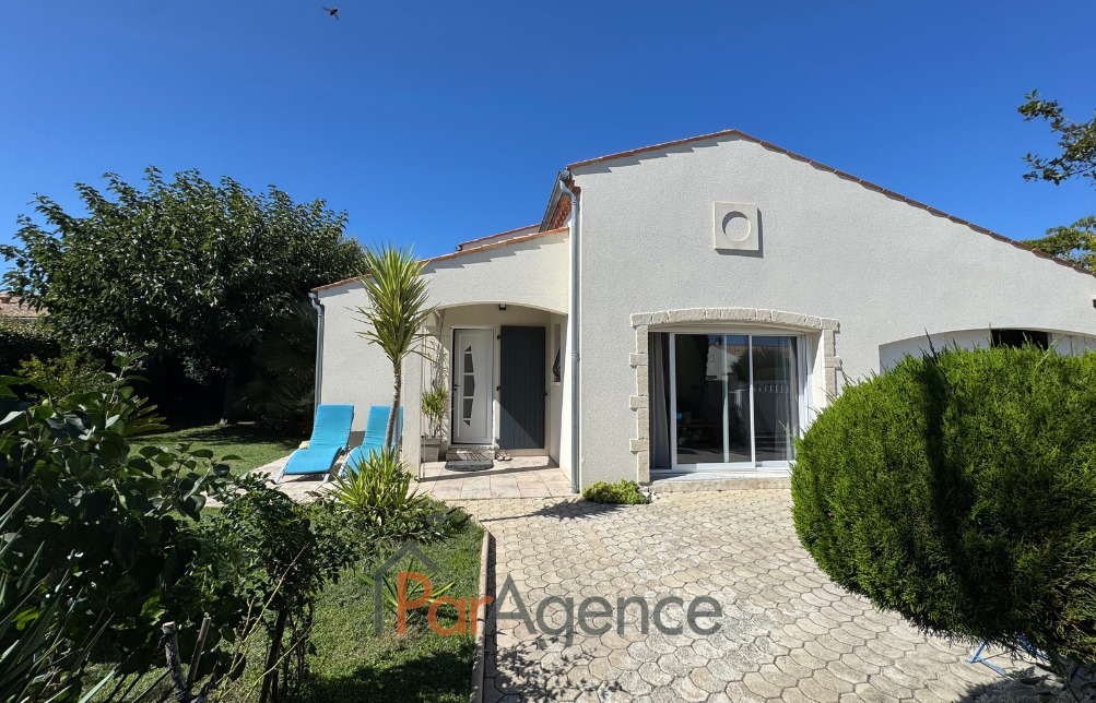 EXCLUSIVITE SAINT-PALAIS-SUR-MER A 350 m du Parc de la Mairie de Vaux-sur-mer et 1300 m de la plage de Nauzan, Maison 3 chambres + mezzanine construite en 1998, en parfait état, comprenant pour environ 110 m2 habitables : entrée avec placard, salon avec poele à bois scandinave, surmonté d'une mezzanine, cuisine équipée, ces deux pièces donnant sur une véranda de 14 m2, dégagement desservant deux chambres dont une avec placard, salle d'eau et w.c. séparé, cellier, salle d'eau avec w.c., une troisième chambre avec mezzanine mansardée. Chauffage électrique. En annexes : Un garage attenant de 24.50 m2. Le tout sur un terrain clos et paysager de 629 m2. Les informations sur les risques auxquels ce bien est exposé sont disponibles sur le site Géorisques : www.georisques.gouv.fr. Prix 540800 EUR dont honoraires d'agence à la charge de l'acquéreur 4.% TTC soit 20800 EUR (520000 EUR hors honoraires). https://www.par-agence.fr/nos-honoraires.<br>
