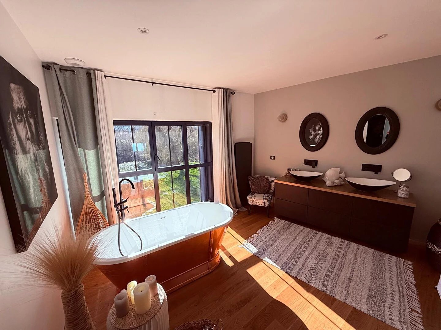 Ancien moulin de caractère avec jardin paysager clos Située au coeur verdoyant de la vallée du Petit Morin, à seulement 10 minutes de La Ferté-sous-Jouarre et de sa gare permettant de rejoindre Paris-Est en 40 minutes, cette demeure historique du XVIIIe siècle entièrement restaurée déploie environ 260 m² habitables dans un environnement bucolique et serein. Implantée sur un terrain clos, soigneusement aménagé et bordé par la rivière (hors zone inondable), la propriété séduit immédiatement par son authenticité, la noblesse de ses matériaux, la générosité de ses volumes et l'atmosphère unique qui s'en dégage. Le rez-de-chaussée offre une entrée accueillante desservant un vaste salon avec cheminée à insert, un second salon pouvant faire office de bibliothèque ou de chambre d'appoint, des sanitaires invités, une buanderie, une cave à vin et une grande cuisine conviviale entièrement équipée, agrémentée d'un piano de cuisson de qualité et ouverte sur une terrasse ensoleillée et une cour pavée. Pierres de Bourgogne, marbre, parquets massifs, huisseries en chêne et verrières esprit atelier composent un décor élégant et raffiné. A l'étage se trouvent trois chambres confortables, un bureau baigné de lumière, une salle d'eau avec toilettes, ainsi qu'une suite parentale comprenant dressing, salle de bains vitrée avec baignoire îlot et douche à l'italienne. Les combles, déjà isolés, laissent entrevoir un potentiel supplémentaire d'aménagement. Le jardin paysager, planté d'essences variées, de rosiers et de massifs colorés, s'ouvre sur une vue dégagée des bois et des sentiers alentours, invitant à la détente et à la promenade. Un abri à bois ainsi que plusieurs petites dépendances viennent compléter l'ensemble. Proche des commodités, commerces et établissements scolaires du bourg voisin, ce bien rare conviendra aussi bien à une famille en résidence principale ou secondaire. Un lieu singulier, restauré avec soin, alliant charme de l'ancien et confort moderne.