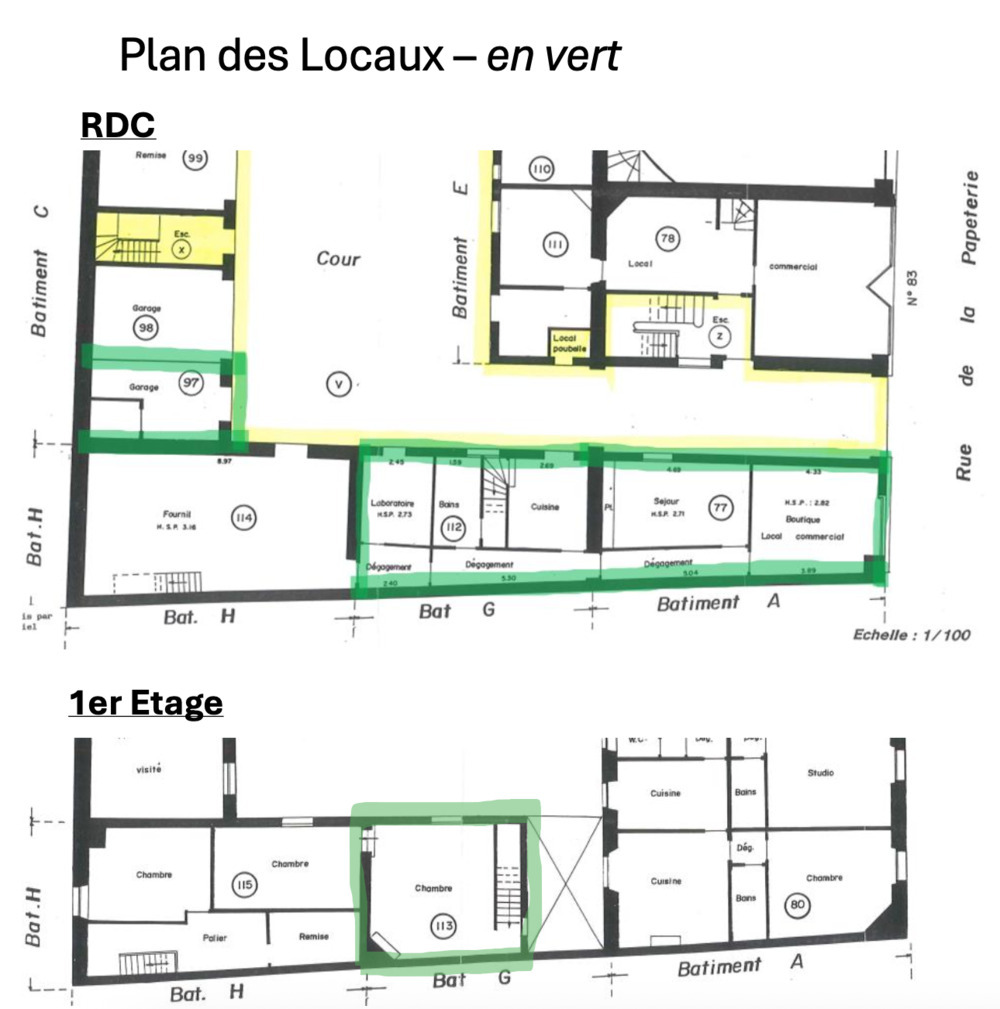 Corbeille Essonnes, rue de la Papeterie, local commercial de 72 m2 à louer comprenant une pièce principale avec vitrine, 2 pièces attenantes et un rangement au 1er étage.