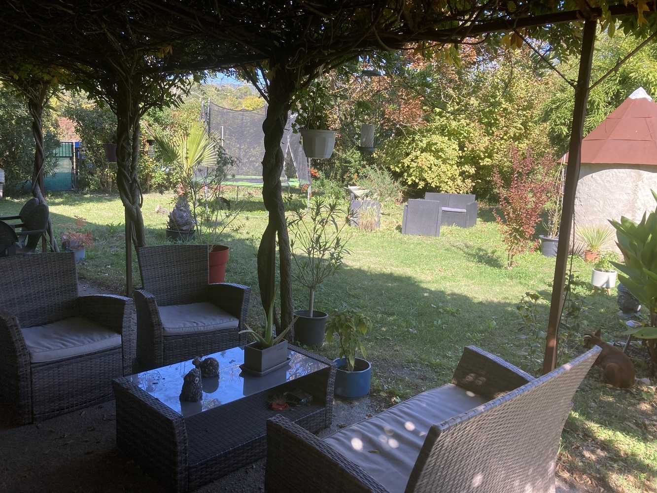 Situé au rez-de-chaussée d'une maison, vous serez séduits par ce logement de 3 pièces, comprenant 2 chambres, 1 salle d'eau et 1 WC séparé, un bel espace de vie séjour-cuisine de 34m² donnant sur 1 terrasse avec pergolas de 15 m², et vue directe sur le jardin privé de 1664 m².