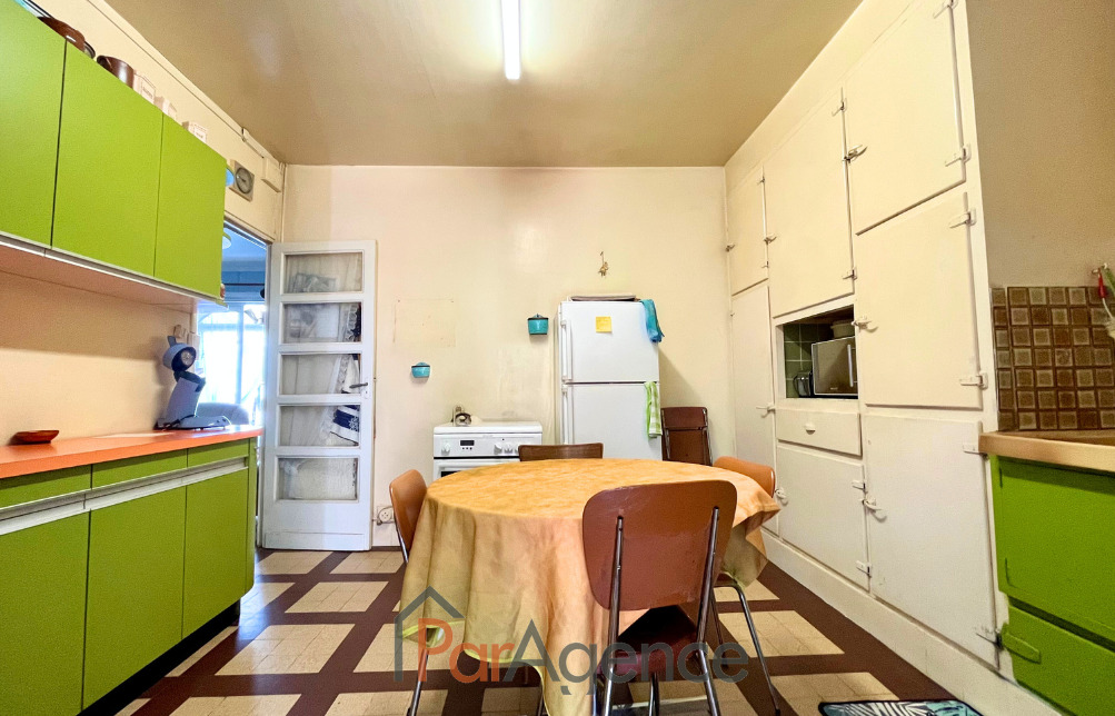 ROYAN centre-ville, à 200 m du marché, maison à rénover d'environ 128 m2 habitables comprenant au rez-de-chaussée : entrée couverte, séjour, salon, cuisine, véranda avec accès jardin. A l'étage : palier, chambre avec salle d'eau, deux chambres avec placard, chambre en enfilade et une salle de bains avec w.c. Chauffage au gaz de ville par radiateurs. En annexes : cave, abri de jardin et w.c. Le tout sur une parcelle close de 166m2. Les informations sur les risques auxquels ce bien est exposé sont disponibles sur le site Géorisques : www.georisques.gouv.fr. Honoraires agence à la charge de l'acquéreur. Prix 220 500 EUR dont honoraires d'agence à la charge de l'acquéreur 5% TTC soit 10 500 EUR (210 000 EUR hors honoraires). https://www.par-agence.fr/nos-honoraires. Visite virtuelle sur demande.