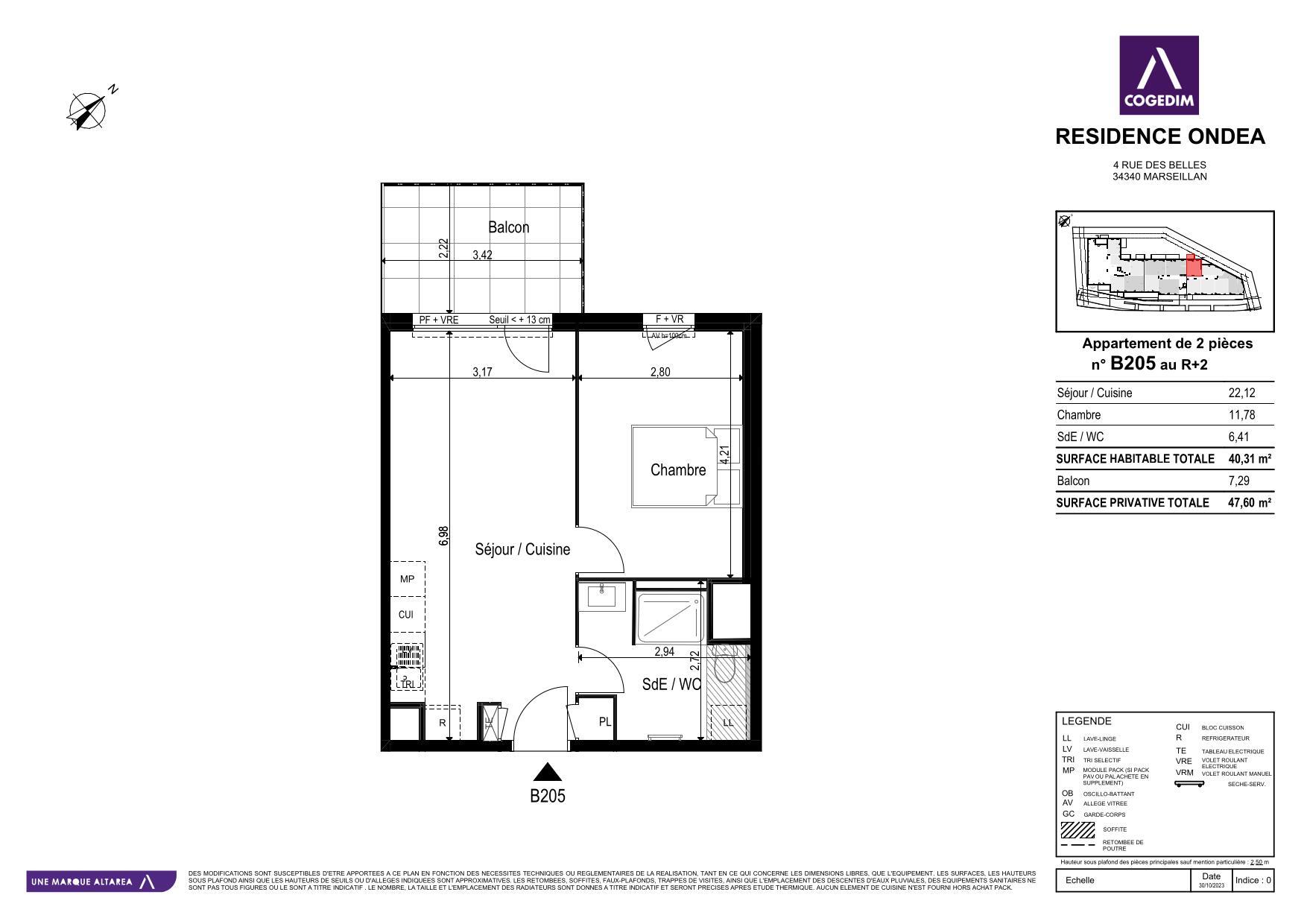 L'appartement est composé d'une séjour avec cuisine aménagée et équipée, de qualité, une chambre, une salle d'eau.