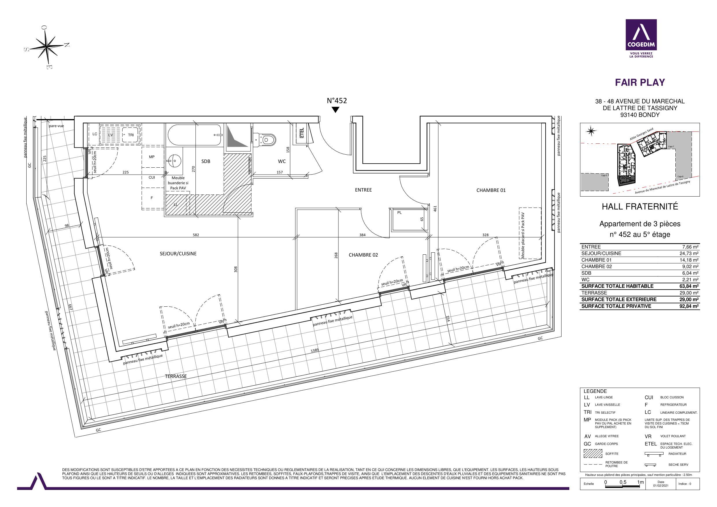 Un appartement de type T3 (452) d'une surface de 63,84m2 au 5éme étage avec ascenseur.