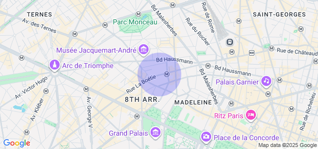 Bus : Nombreuses lignes passant par la rue La Boétie, la rue du Faubourg Saint-Honoré et les Grands Boulevards.