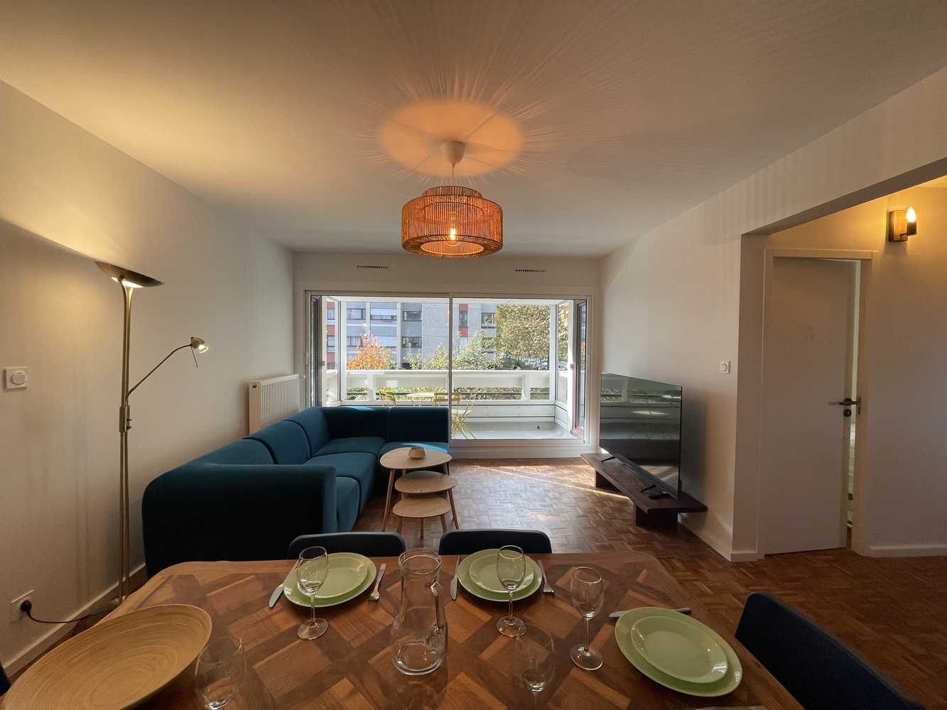 🌞 Le balcon commun offre un bel espace extérieur pour profiter des beaux jours.