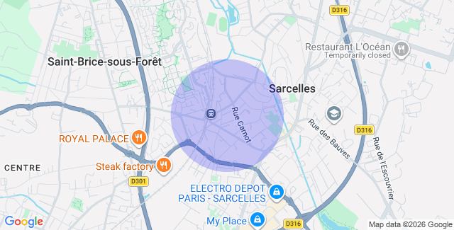 À seulement 200 mètres de la gare Sarcelles – Saint-Brice (RER H), rejoignez Paris Gare du Nord en 20 minutes. Un emplacement stratégique, au cœur d’un quartier pavillonnaire calme, recherché pour sa proximité avec les transports et les commodités.