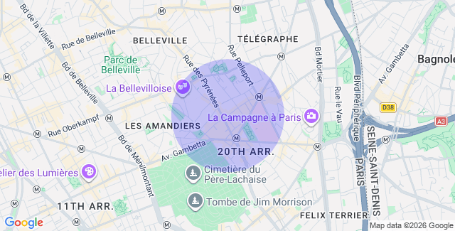 à deux pas des commerces de la rue des Pyrénées et à proximité des parcs de Belleville et des Buttes-Chaumont, la résidence conjugue parfaitement vie urbaine et nature. Idéalement desservie par le métro Gambetta (ligne 3), elle offre une excellente accessibilité tout en préservant calme et intimité.